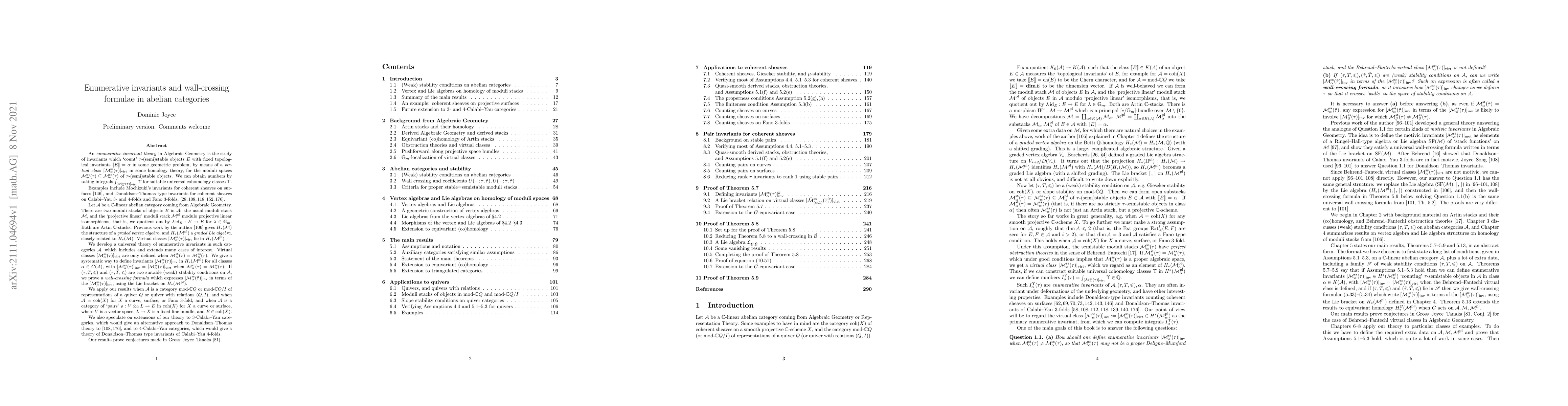 This paper develops a universal theory for enumerative invariants in abelian categories, defining invariants and proving wall-crossing formulae for stability conditions. It applies these results to various moduli stacks, proving conjectures in related algebraic geometry research.
