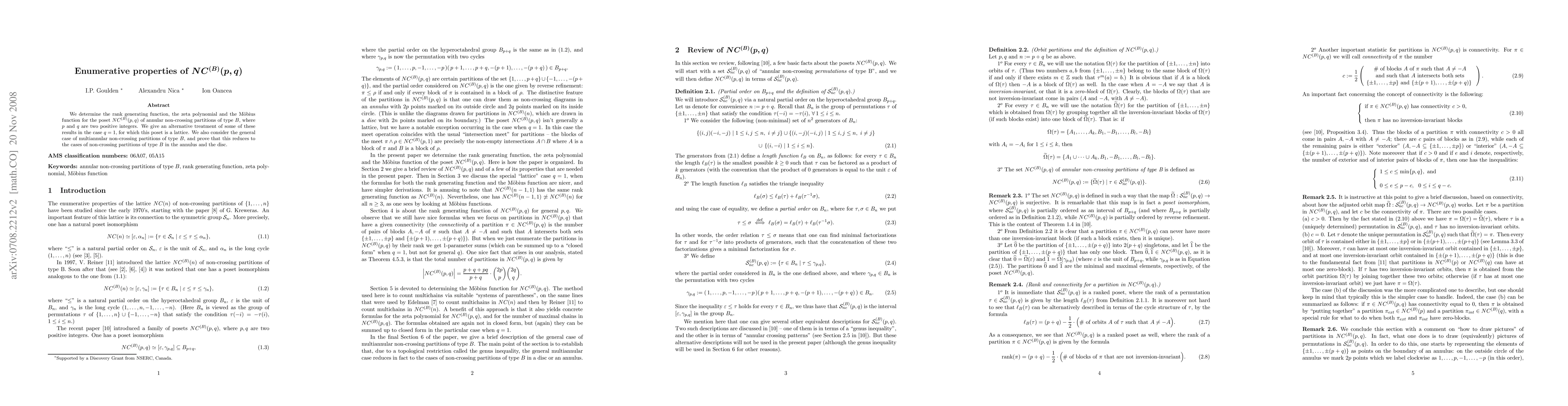 We determine the rank generating function, the zeta polynomial and the Moebius function for the poset NC^B(p,q) of annular non-crossing partitions of type B, where p and q are two positive integers. We give an alternative treatment of some of these results in the case q=1, for which this poset is a lattice. We also consider the general case of multiannular non-crossing partitions of type B, and prove that this reduces to the cases of non-crossing partitions of type B in the annulus and in the disc.