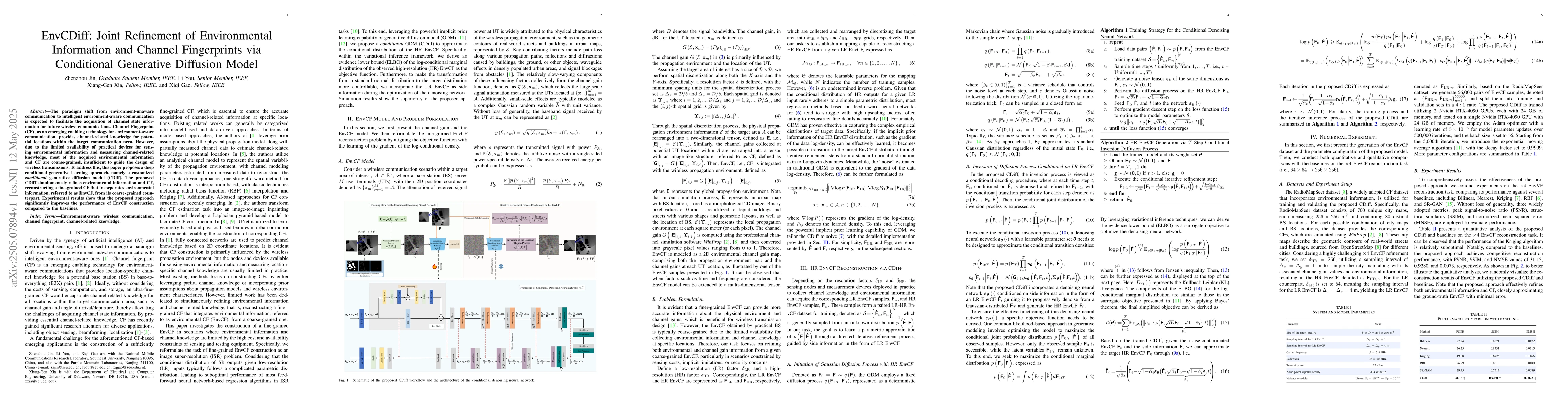 The main technical contribution is the development of a customized conditional generative diffusion model (CDiff) for joint refinement of environmental information and Channel Fingerprints, resulting in a fine-grained EnvCF.