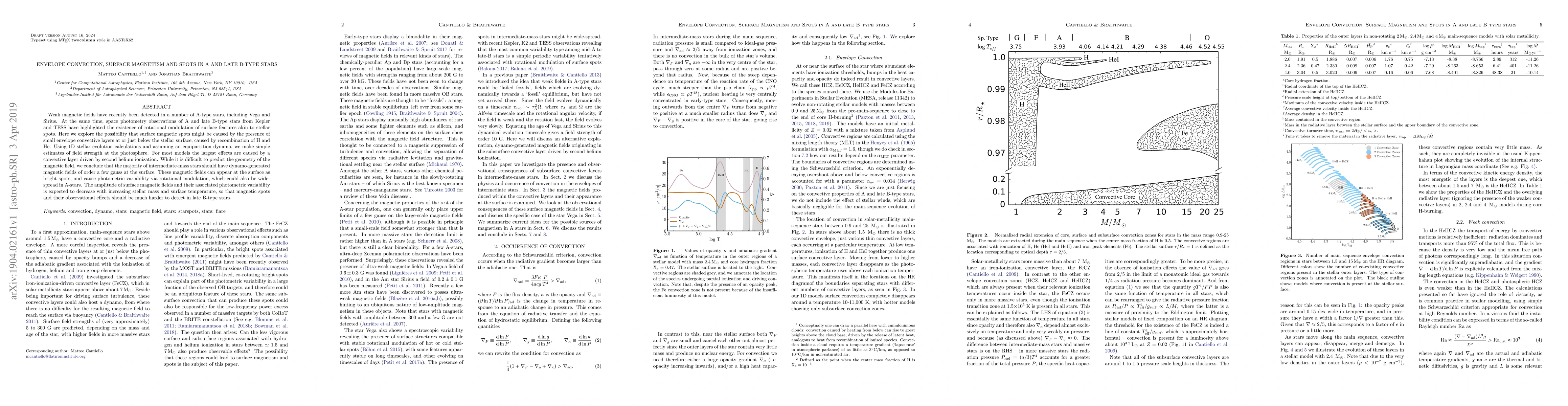 The research proposes that weak magnetic fields in A- and late B-type stars, like Vega and Sirius, could be caused by small envelope convective layers due to hydrogen and helium recombination. Using 1D stellar evolution calculations, they estimate surface magnetic field strengths of a few gauss, suggesting these fields may appear as photometric variability or 'stellar spots', more detectable in A-stars than late B-type stars due to decreasing field strength with increasing mass and temperature.