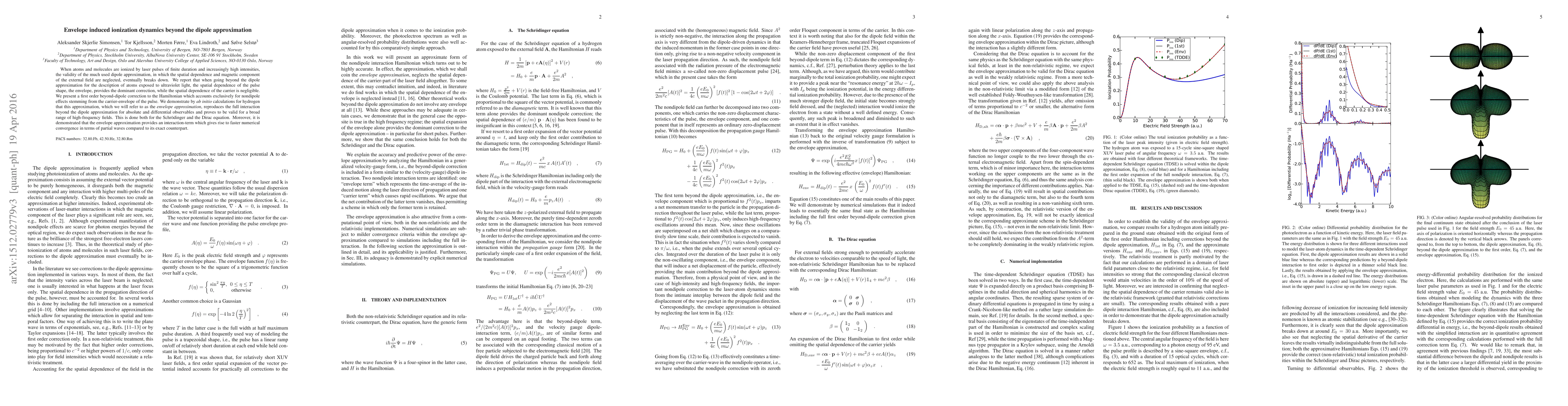 When atoms and molecules are ionized by laser pulses of finite duration and increasingly high intensities, the validity of the much used dipole approximation, in which the spatial dependence and magnetic component of the external field are neglected, eventually breaks down. We report that when going beyond the dipole approximation for the description of atoms exposed to ultraviolet light, the spatial dependence of the pulse shape, the envelope, provides the dominant correction, while the spatial dependence of the carrier is negligible. We present a first order beyond-dipole correction to the Hamiltonian which accounts exclusively for nondipole effects stemming from the carrier-envelope of the pulse. We demonstrate by {\it ab initio} calculations for hydrogen that this approximation, which we will refer to as the {\it envelope approximation}, reproduces the full interaction beyond the dipole approximation for absolute and differential observables and proves to be valid for a broad range of high-frequency fields. This is done both for the Schr{\"o}dinger and the Dirac equation. Moreover, it is demonstrated that the envelope approximation provides an interaction-term which gives rise to faster numerical convergence in terms of partial waves compared to its exact counterpart.
