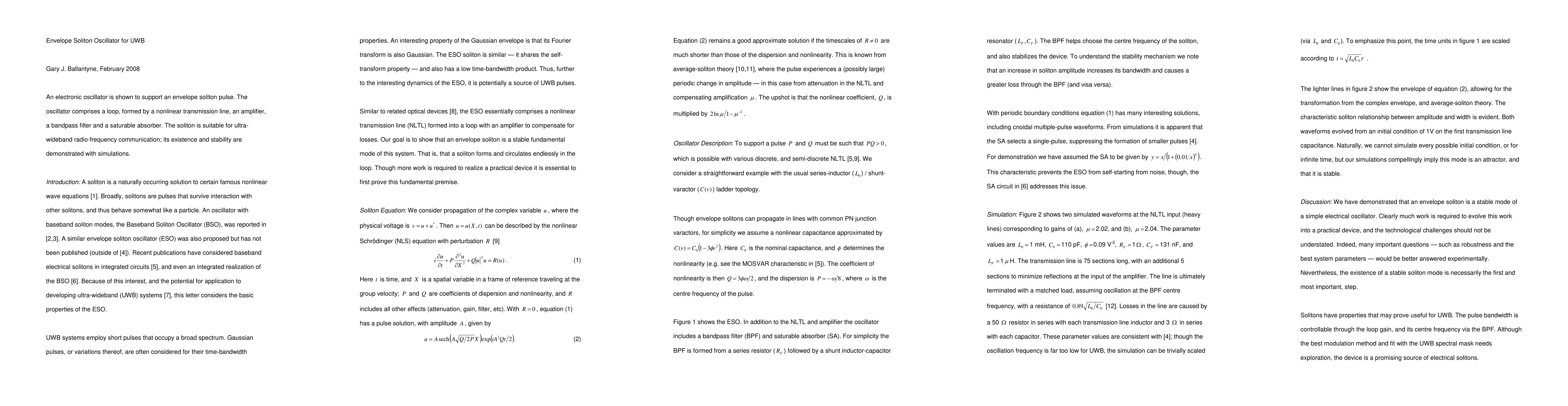 Researchers demonstrate an electronic oscillator that supports an envelope soliton pulse, a stable pulse suitable for ultra-wideband radio-frequency communication.