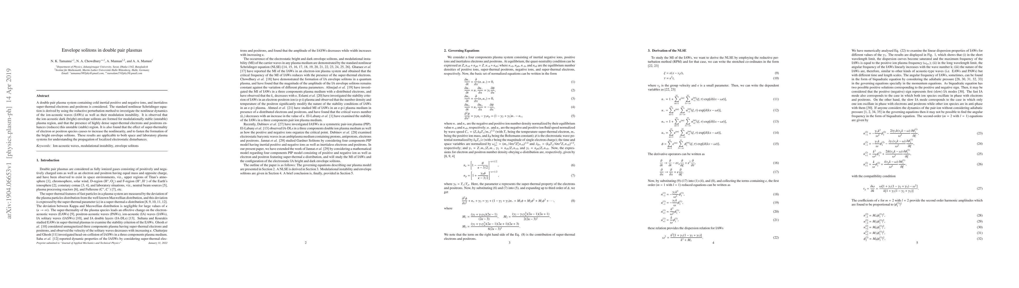 Theoretical analysis using Rice-Parker Method (RPM) to derive NLSE for MI of IAWs in a four-component PIP medium.