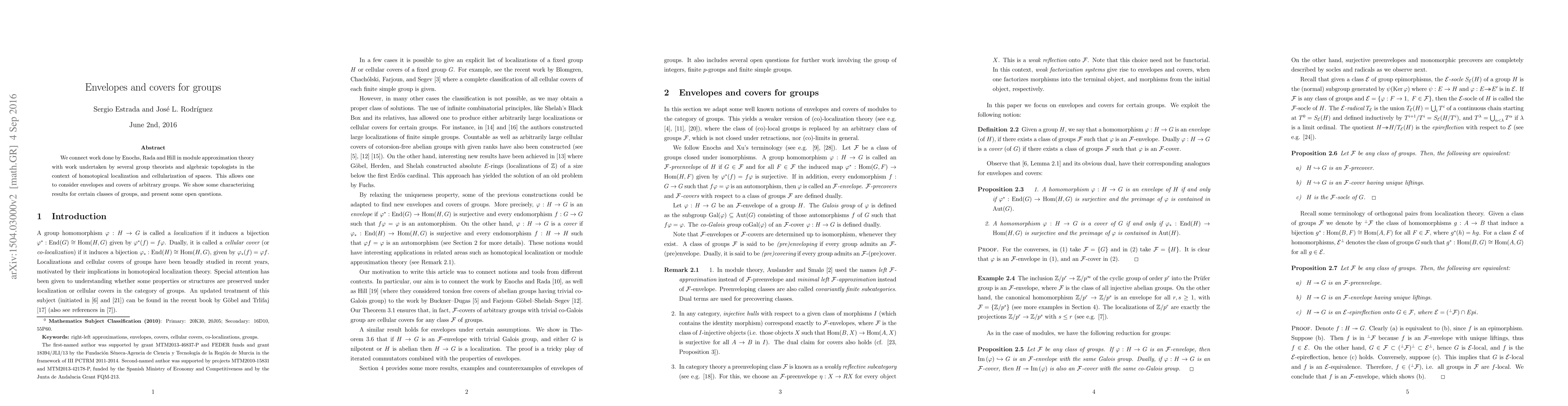 We connect work done by Enochs, Rada and Hill in module approximation theory with work undertaken by several group theorists and algebraic topologists in the context of homotopical localization and cellularization of spaces. This allows one to consider envelopes and covers of arbitrary groups. We show some characterizing results for certain classes of groups, and present some open questions.