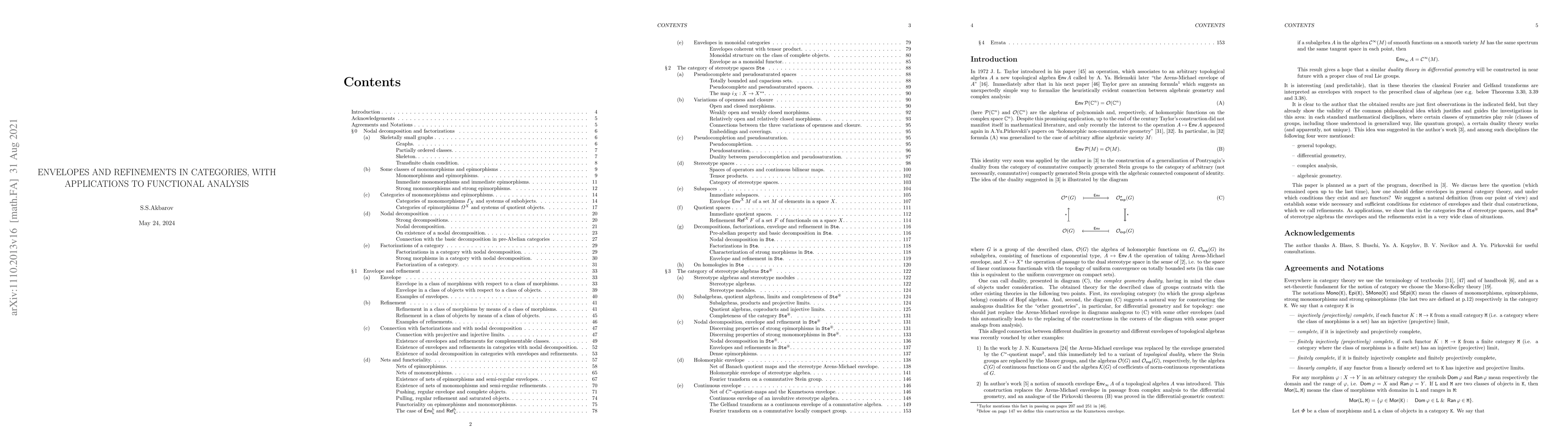 An envelope in a category is a construction that generalizes the operations of "exterior completion", like completion of a locally convex space, or Stone-\v{C}ech compactification of a topological space, or universal enveloping algebra of a Lie algebra. Dually, a refinement generalizes operations of "interior enrichment", like bornologification (or saturation) of a locally convex space, or simply connected covering of a Lie group. In this paper we define envelopes and refinements in abstract categories and discuss the conditions under which these constructions exist and are functors. The aim of the exposition is to build a fundament for duality theories of non-commutative groups based on the idea of envelope. The advantage of this approach is that in the arising theories the analogs of group algebras are Hopf algebras. At the same time the classical Fourier and Gelfand transforms are interpreted as envelopes with respect to the prearranged classes of algebras.