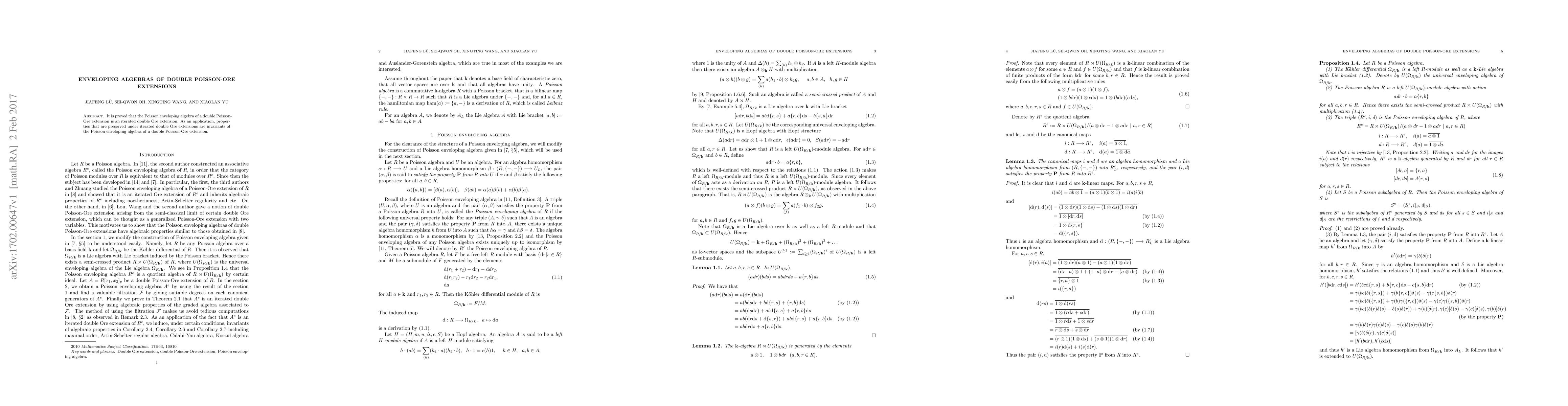 This paper proves that the Poisson enveloping algebra of a double Poisson-Ore extension is an iterated double Ore extension, establishing invariants for such algebras that are preserved under iterated double Ore extensions.