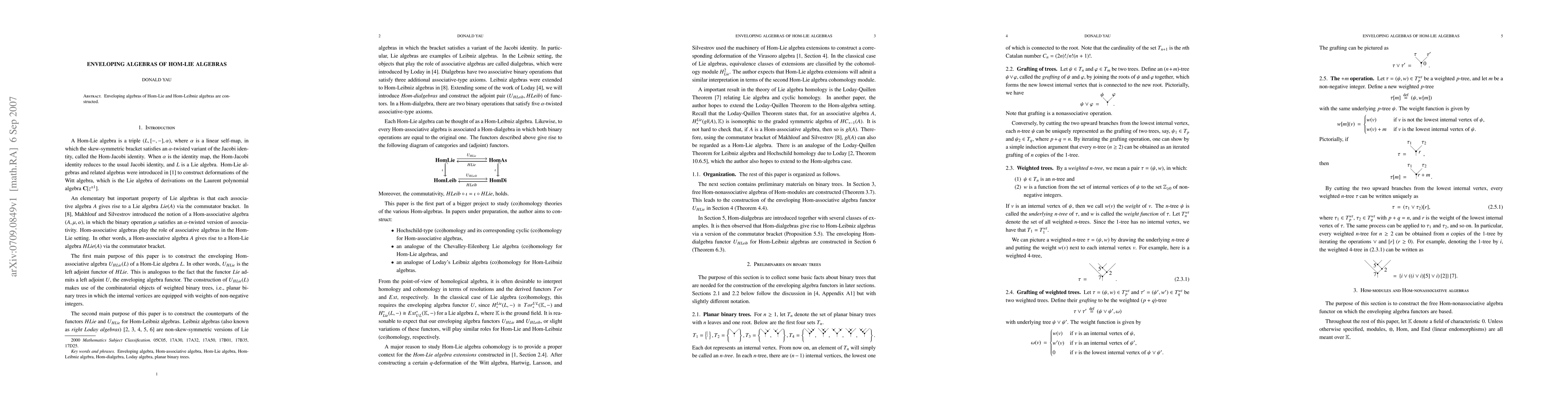Summary: The paper constructs enveloping algebras for Hom-Lie and Hom-Leibniz algebras, extending classical constructions to the Hom-algebra setting and exploring their structural properties.