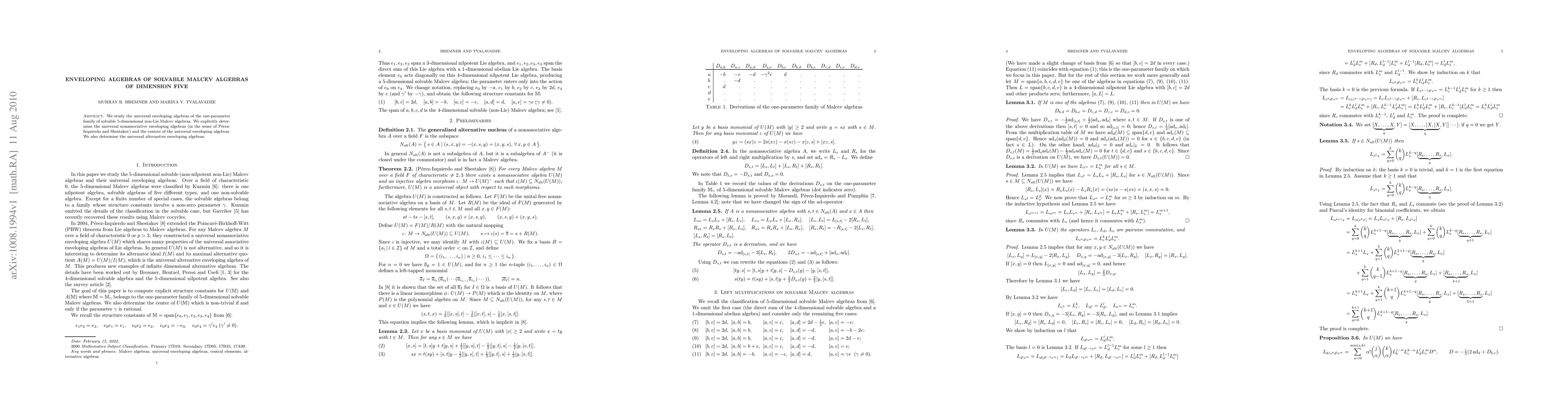 This paper investigates the universal enveloping algebras of a one-parameter family of 5-dimensional solvable Malcev algebras, determining their nonassociative enveloping algebras, centers, and universal alternative enveloping algebras. The study focuses on the structural properties and algebraic characteristics of these non-Lie algebras.