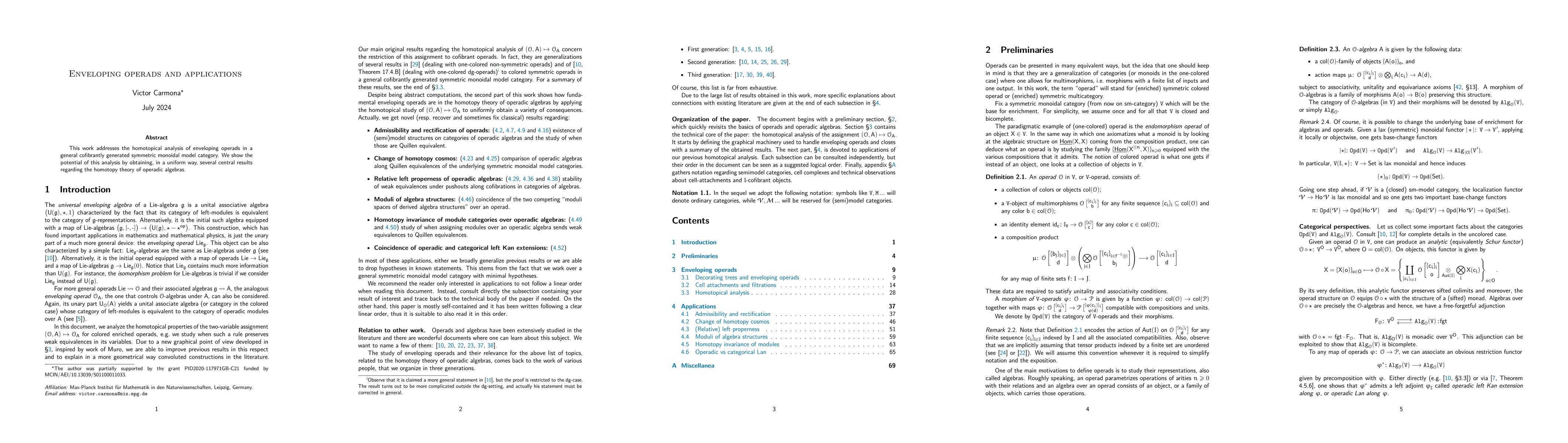 This paper explores the homotopical analysis of enveloping operads within cofibrantly generated symmetric monoidal model categories, leading to uniform derivations of key results in the homotopy theory of operadic algebras.