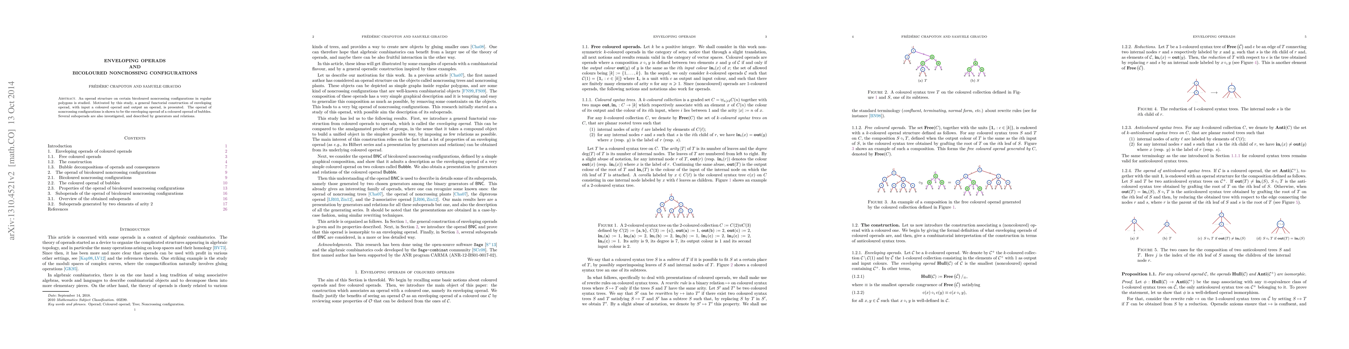 This paper explores an operad structure on bicoloured noncrossing configurations within regular polygons, introducing a general functorial construction for enveloping operads. It demonstrates that the operad of noncrossing configurations is the enveloping operad of a coloured operad of bubbles, with detailed investigation of several suboperads defined by generators and relations.