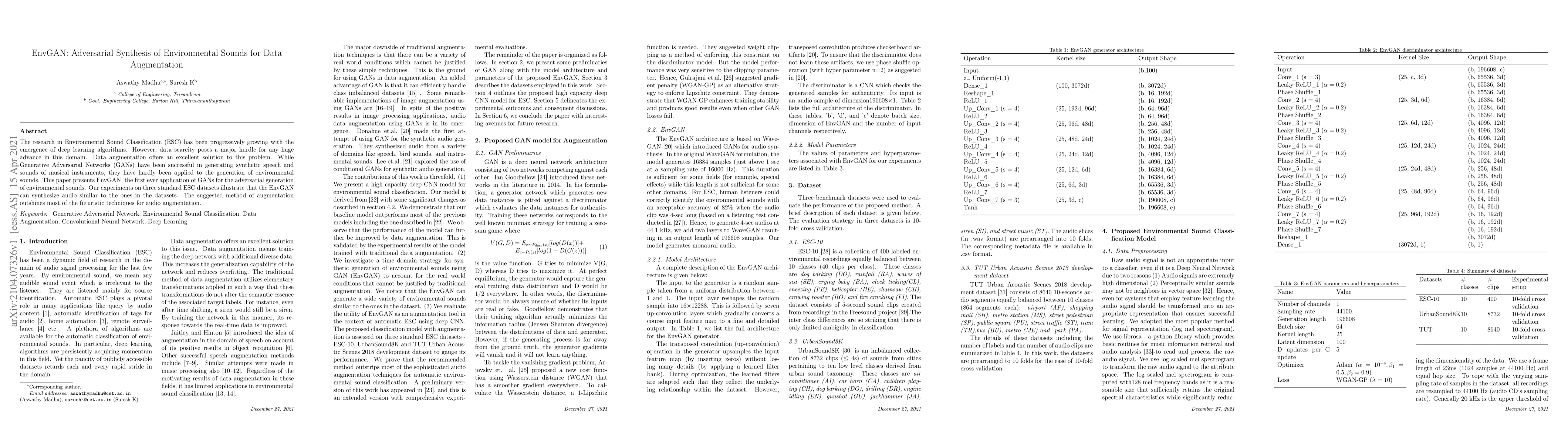 EnvGAN leverages Generative Adversarial Networks to generate synthetic environmental sounds, addressing data scarcity in Environmental Sound Classification. Experiments show that EnvGAN-augmented data outperforms other audio augmentation techniques.