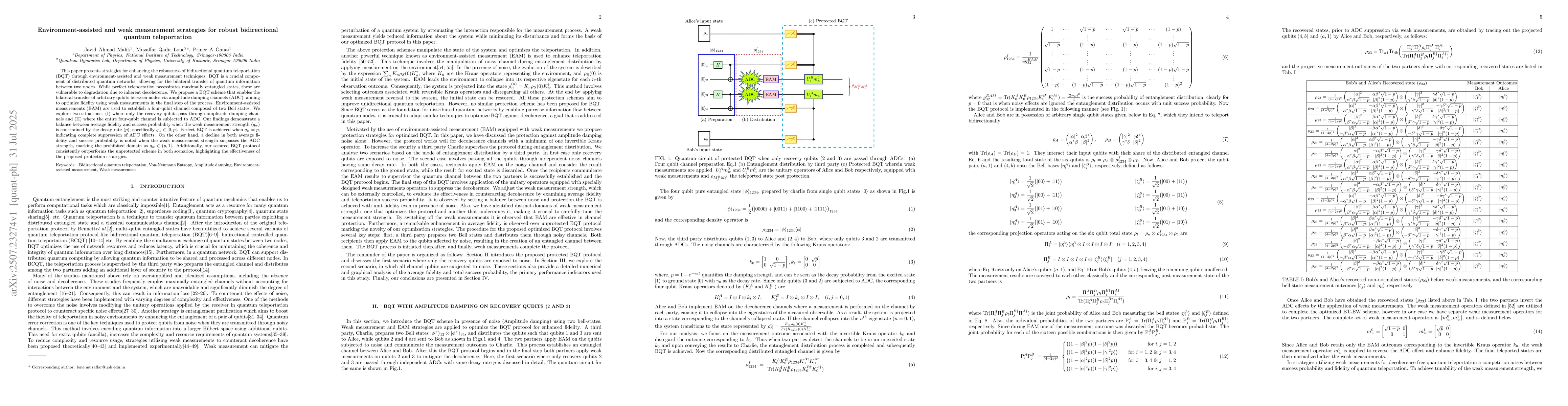The paper proposes strategies for enhancing robustness of bidirectional quantum teleportation (BQT) using environment-assisted measurements (EAM) and weak measurements, particularly in the presence of amplitude damping channels (ADC).