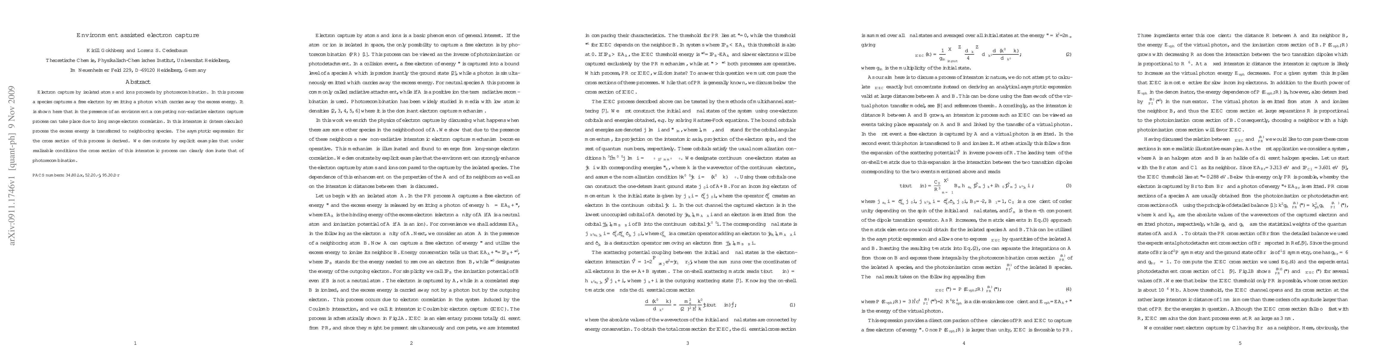 Electron capture by {\it isolated} atoms and ions proceeds by photorecombination. In this process a species captures a free electron by emitting a photon which carries away the excess energy. It is shown here that in the presence of an {\it environment} a competing non-radiative electron capture process can take place due to long range electron correlation. In this interatomic (intermolecular) process the excess energy is transferred to neighboring species. The asymptotic expression for the cross section of this process is derived. We demonstrate by explicit examples that under realizable conditions the cross section of this interatomic process can clearly dominate that of photorecombination.