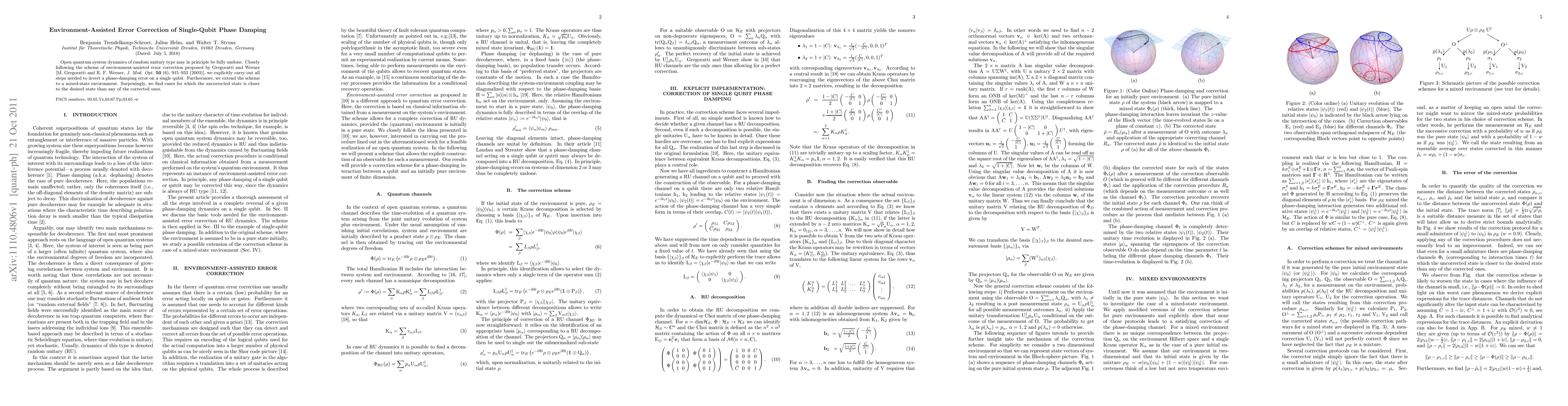 This paper details a method for correcting phase-damping errors in single-qubit systems using environment-assisted error correction, extending the approach to mixed-state environments. It reveals instances where the uncorrected state is closer to the desired state than the corrected ones.