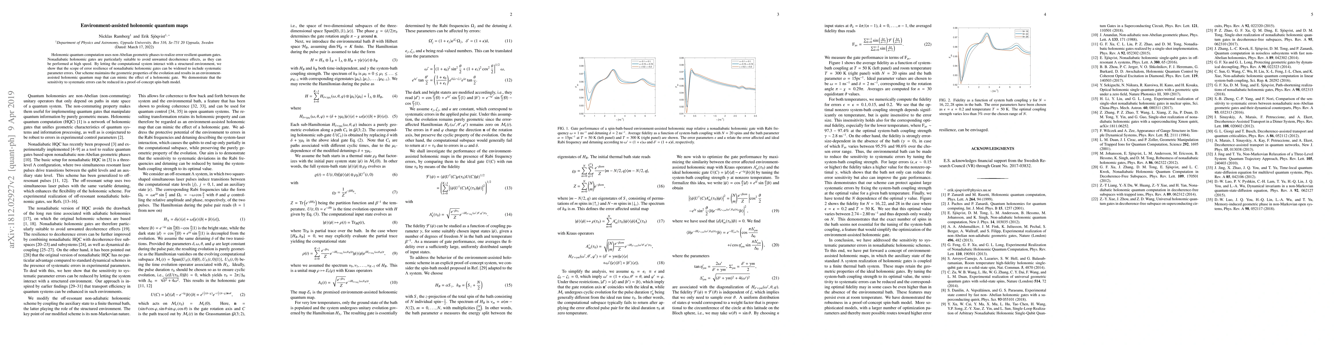 Holonomic quantum computation uses non-Abelian geometric phases to realize error resilient quantum gates. Nonadiabatic holonomic gates are particularly suitable to avoid unwanted decoherence effects, as they can be performed at high speed. By letting the computational system interact with a structured environment, we show that the scope of error resilience of nonadiabatic holonomic gates can be widened to include systematic parameter errors. Our scheme maintains the geometric properties of the evolution and results in an environment-assisted holonomic quantum map that can mimic the effect of a holonomic gate. We demonstrate that the sensitivity to systematic errors can be reduced in a proof-of-concept spin-bath model.
