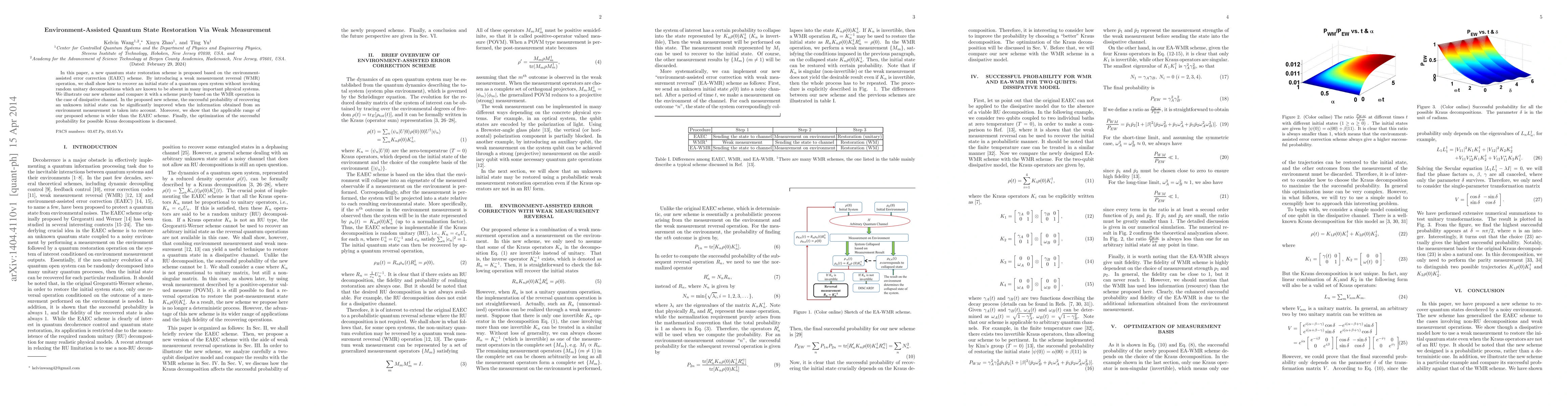 Researchers propose a new quantum state restoration scheme using environment-assisted error correction with weak measurement reversal, improving successful recovery rates over traditional methods.