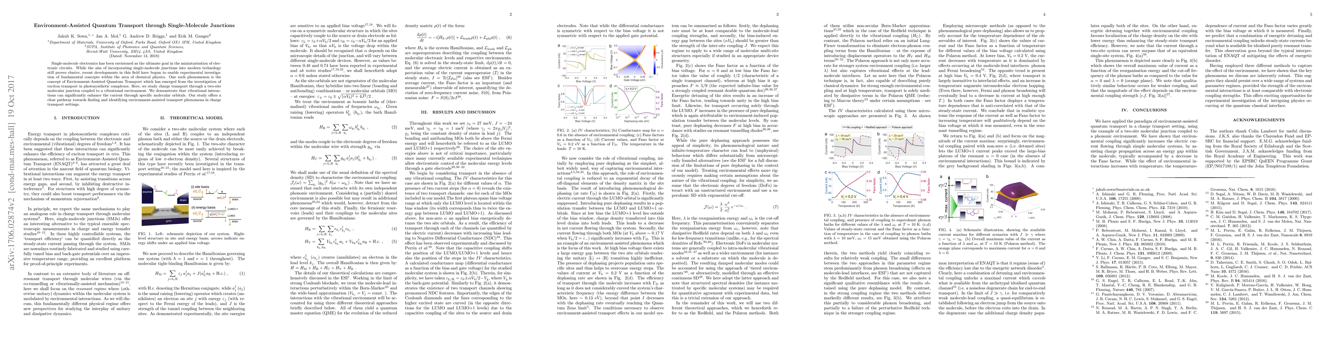 Single-molecule electronics has been envisioned as the ultimate goal in the miniaturisation of electronic circuits. While the aim of incorporating single-molecule junctions into modern technology still proves elusive, recent developments in this field have begun to enable experimental investigation fundamental concepts within the area of chemical physics. One such phenomenon is the concept of Environment-Assisted Quantum Transport which has emerged from the investigation of exciton transport in photosynthetic complexes. Here, we study charge transport through a two-site molecular junction coupled to a vibrational environment. We demonstrate that vibrational interactions can also significantly enhance the current through specific molecular orbitals. Our study offers a clear pathway towards finding and identifying environment-assisted transport phenomena in charge transport settings.