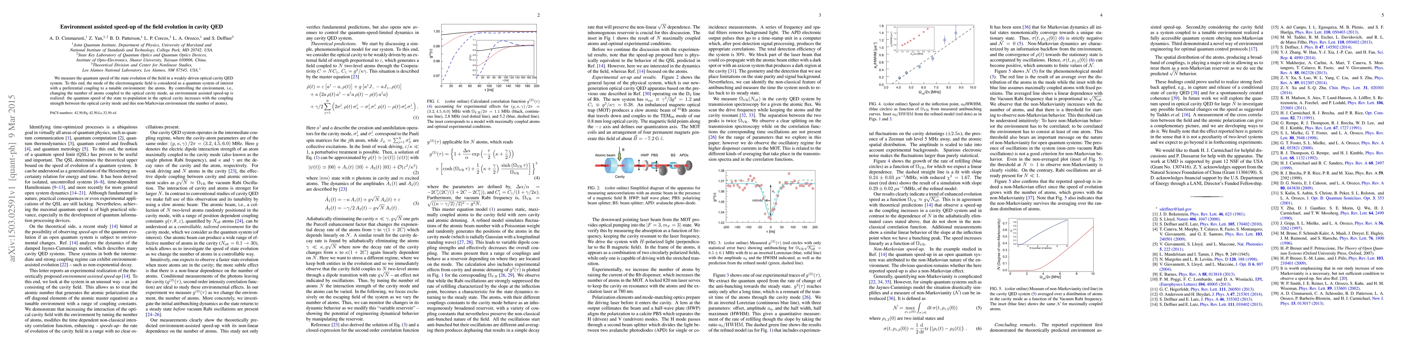 This paper investigates the quantum speed-up of field evolution in cavity QED by tuning the environment, specifically the number of atoms coupled to the optical cavity. The study finds that stronger coupling to the non-Markovian environment accelerates the quantum state re-population in the optical cavity.