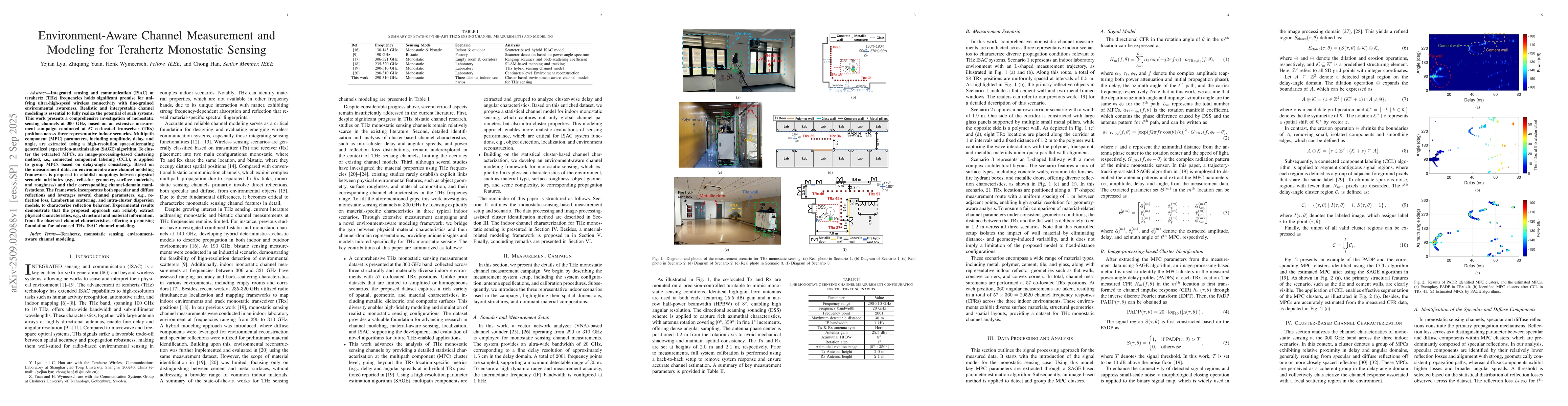 Integrated sensing and communication (ISAC) at terahertz (THz) frequencies holds significant promise for unifying ultra-high-speed wireless connectivity with fine-grained environmental awareness. Realistic and interpretable channel modeling is essential to fully realize the potential of such systems. This work presents a comprehensive investigation of monostatic sensing channels at 300~GHz, based on an extensive measurement campaign conducted at 57 co-located transceiver (TRx) positions across three representative indoor scenarios. Multipath component (MPC) parameters, including amplitude, delay, and angle, are extracted using a high-resolution space-alternating generalized expectation-maximization (SAGE) algorithm. To cluster the extracted MPCs, an image-processing-based clustering method, i.e., connected component labeling (CCL), is applied to group MPCs based on delay-angle consistency. Based on the measurement data, an environment-aware channel modeling framework is proposed to establish mappings between physical scenario attributes (e.g., reflector geometry, surface materials, and roughness) and their corresponding channel-domain manifestations. The framework incorporates both specular and diffuse reflections and leverages several channel parameters, e.g., reflection loss, Lambertian scattering, and intra-cluster dispersion models, to characterize reflection behavior. Experimental results demonstrate that the proposed approach can reliably extract physical characteristics, e.g., structural and material information, from the observed channel characteristics, offering a promising foundation for advanced THz ISAC channel modeling.