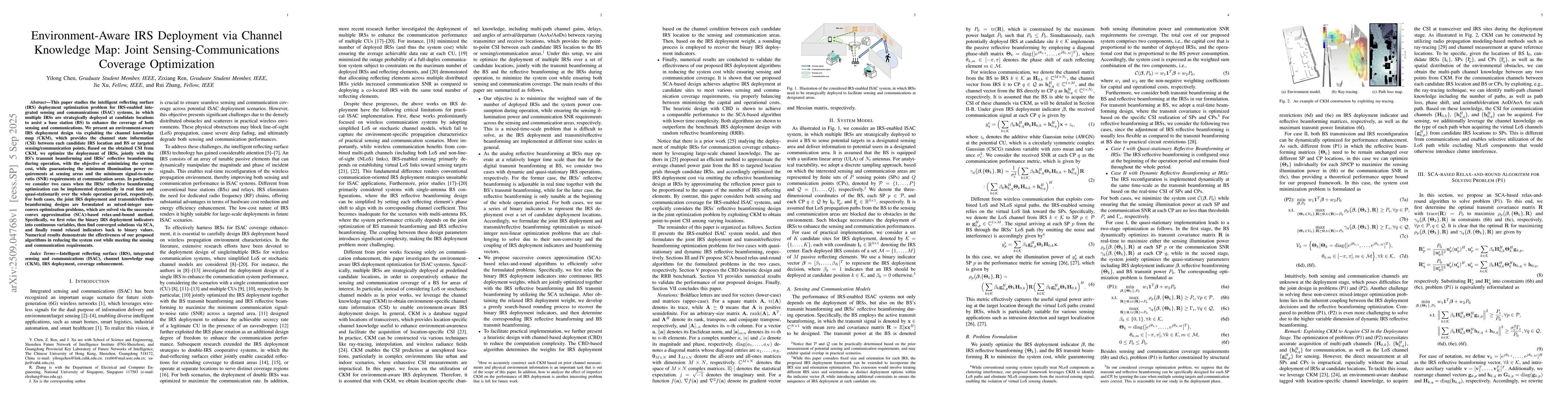 This paper studies the intelligent reflecting surface (IRS) deployment optimization problem for IRS-enabled integrated sensing and communications (ISAC) systems, in which multiple IRSs are strategically deployed at candidate locations to assist a base station (BS) to enhance the coverage of both sensing and communications. We present an environment-aware IRS deployment design via exploiting the channel knowledge map (CKM), which provides the channel state information (CSI) between each candidate IRS location and BS or targeted sensing/communication points. Based on the obtained CSI from CKM, we optimize the deployment of IRSs, jointly with the BS's transmit beamforming and IRSs' reflective beamforming during operation, with the objective of minimizing the system cost, while guaranteeing the minimum illumination power requirements at sensing areas and the minimum signal-to-noise ratio (SNR) requirements at communication areas. In particular, we consider two cases when the IRSs' reflective beamforming optimization can be implemented dynamically in real time and quasi-stationarily over the whole operation period, respectively. For both cases, the joint IRS deployment and transmit/reflective beamforming designs are formulated as mixed-integer non-convex optimization problems, which are solved via the successive convex approximation (SCA)-based relax-and-bound method. Specifically, we first relax the binary IRS deployment indicators into continuous variables, then find converged solutions via SCA, and finally round relaxed indicators back to binary values. Numerical results demonstrate the effectiveness of our proposed algorithms in reducing the system cost while meeting the sensing and communication requirements.