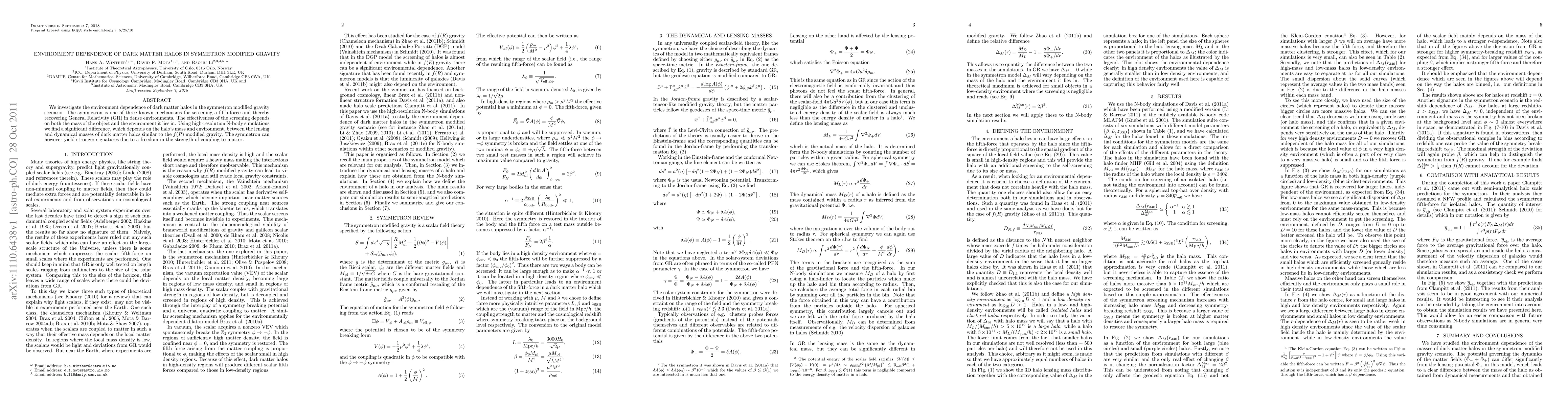 We investigate the environment dependence of dark matter halos in the symmetron modified gravity scenario. The symmetron is one of three known mechanisms for screening a fifth-force and thereby recovering General Relativity in dense environments. The effectiveness of the screening depends on both the mass of the object and the environment it lies in. Using high-resolution N-body simulations we find a significant difference, which depends on the halos mass and environment, between the lensing and dynamical masses of dark matter halos similar to the f(R) modified gravity. The symmetron can however yield stronger signatures due to a freedom in the strength of the coupling to matter.