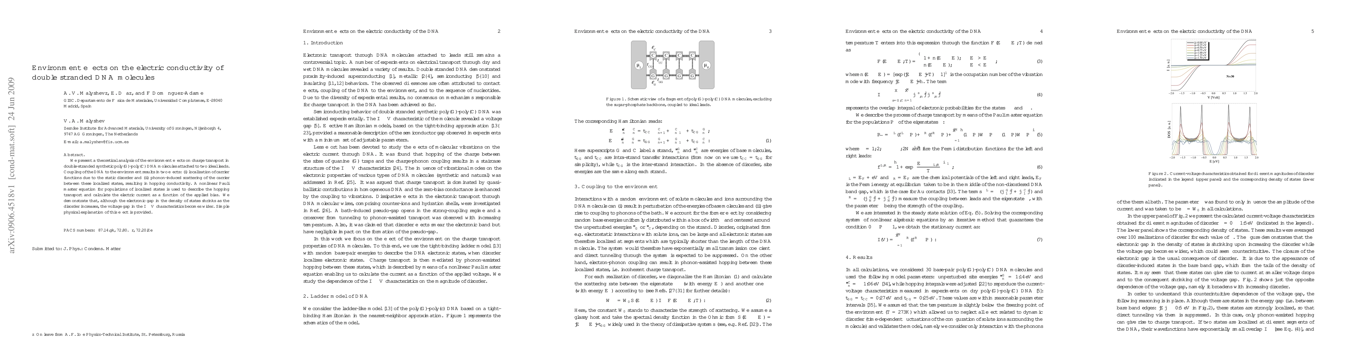 We present a theoretical analysis of the environment effects on charge transport in double-stranded synthetic poly(G)-poly(C) DNA molecules attached to two ideal leads. Coupling of the DNA to the environment results in two effects: (i) localization of carrier functions due to the static disorder and (ii) phonon-induced scattering of the carrier between these localized states, resulting in hopping conductivity. A nonlinear Pauli master equation for populations of localized states is used to describe the hopping transport and calculate the electric current as a function of the applied bias. We demonstrate that, although the electronic gap in the density of states shrinks as the disorder increases, the voltage gap in the $I-V$ characteristics becomes wider. Simple physical explanation of this effect is provided.