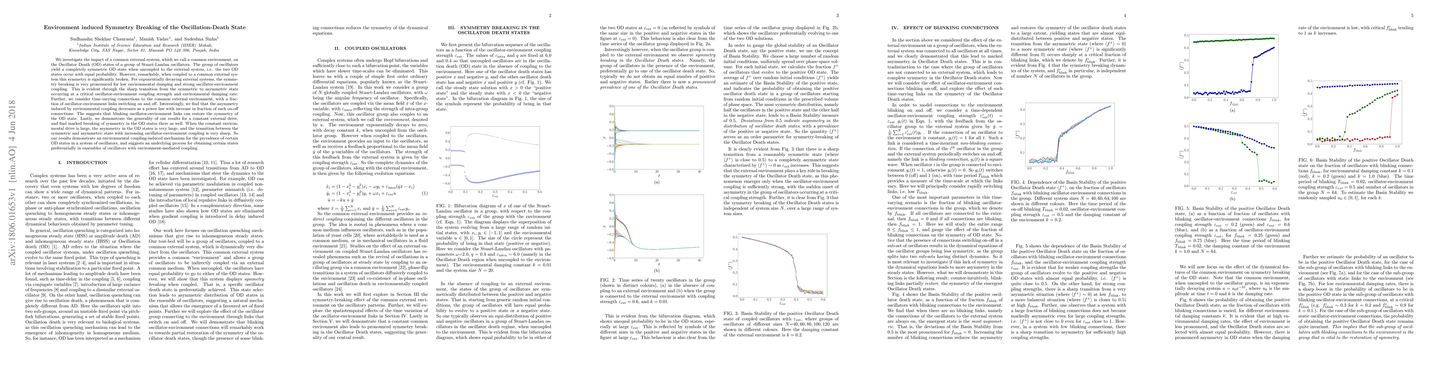 We investigate the impact of a common external system, which we call a common environment, on the Oscillator Death (OD) states of a group of Stuart-Landau oscillators. The group of oscillators yield a completely symmetric OD state when uncoupled to the external system, i.e. the two OD states occur with equal probability. However, remarkably, when coupled to a common external system this symmetry is significantly broken. For exponentially decaying external systems, the symmetry breaking is very pronounced for low environmental damping and strong oscillator-environment coupling. This is evident through the sharp transition from the symmetric to asymmetric state occurring at a critical oscillator-environment coupling strength and environmental damping rate. Further, we consider time-varying connections to the common external environment, with a fraction of oscillator-environment links switching on and off. Interestingly, we find that the asymmetry induced by environmental coupling decreases as a power law with increase in fraction of such on-off connections. The suggests that blinking oscillator-environment links can restore the symmetry of the OD state. Lastly, we demonstrate the generality of our results for a constant external drive, and find marked breaking of symmetry in the OD states there as well. When the constant environmental drive is large, the asymmetry in the OD states is very large, and the transition between the symmetric and asymmetric state with increasing oscillator-environment coupling is very sharp. So our results demonstrate an environmental coupling-induced mechanism for the prevalence of certain OD states in a system of oscillators, and suggests an underlying process for obtaining certain states preferentially in ensembles of oscillators with environment-mediated coupling.