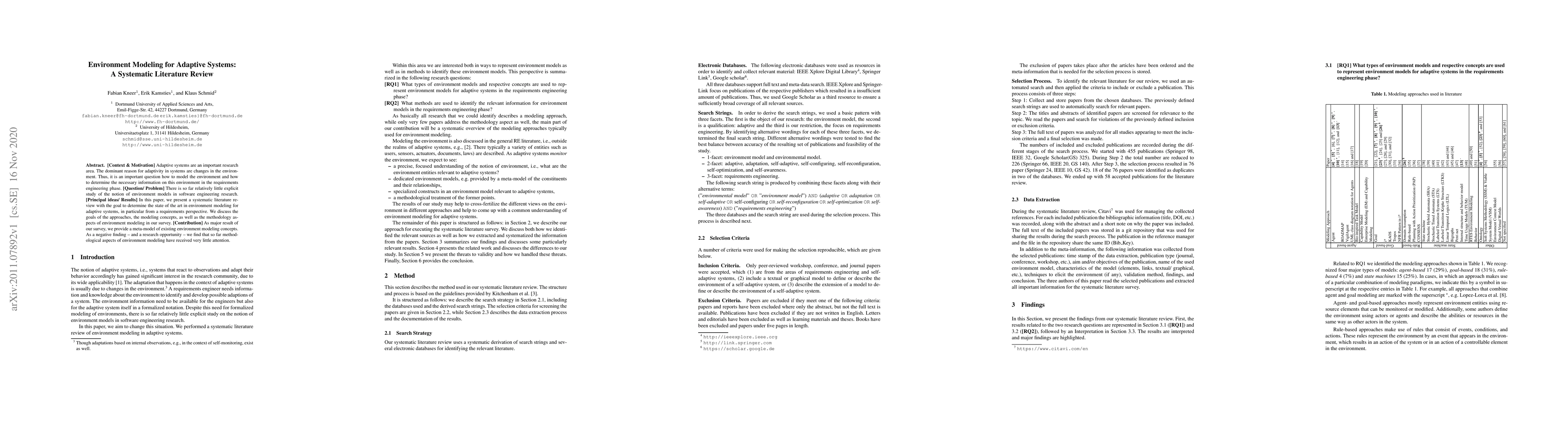 This paper conducts a systematic literature review to assess the current state of environment modeling for adaptive systems, focusing on requirements engineering. It identifies a lack of methodological attention in existing environment modeling approaches, highlighting a significant research opportunity.