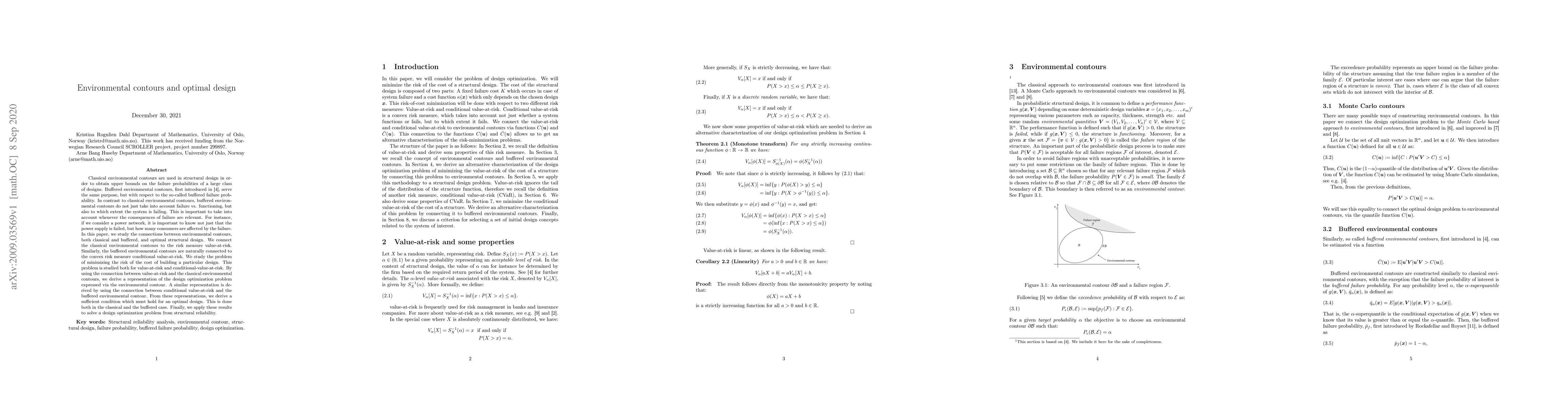 This paper explores the relationship between environmental contours and optimal structural design, focusing on both classical and buffered environmental contours. It establishes connections between these contours and risk measures, deriving sufficient conditions for optimal design and applying these to structural reliability problems.