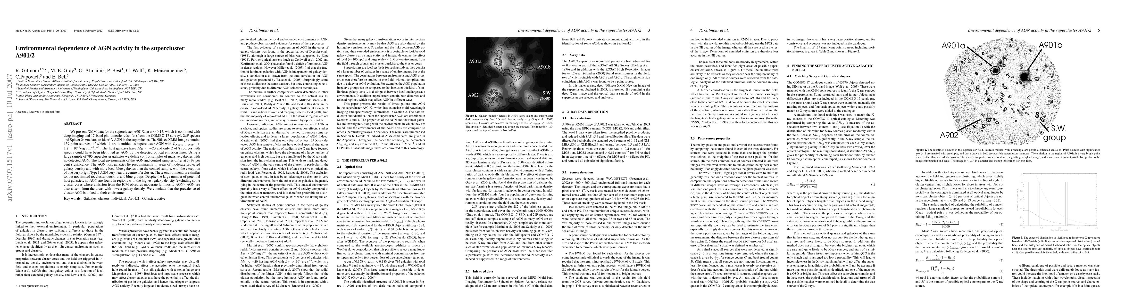 This study uses XMM data combined with multi-wavelength observations to identify Active Galactic Nuclei (AGN) in the supercluster A901/2, finding that 11 AGN reside in areas of moderate galaxy density with more local blue galaxies compared to control samples. The research concludes that AGN activity is environmentally dependent, with no AGN detected in the highest or lowest galaxy density regions.