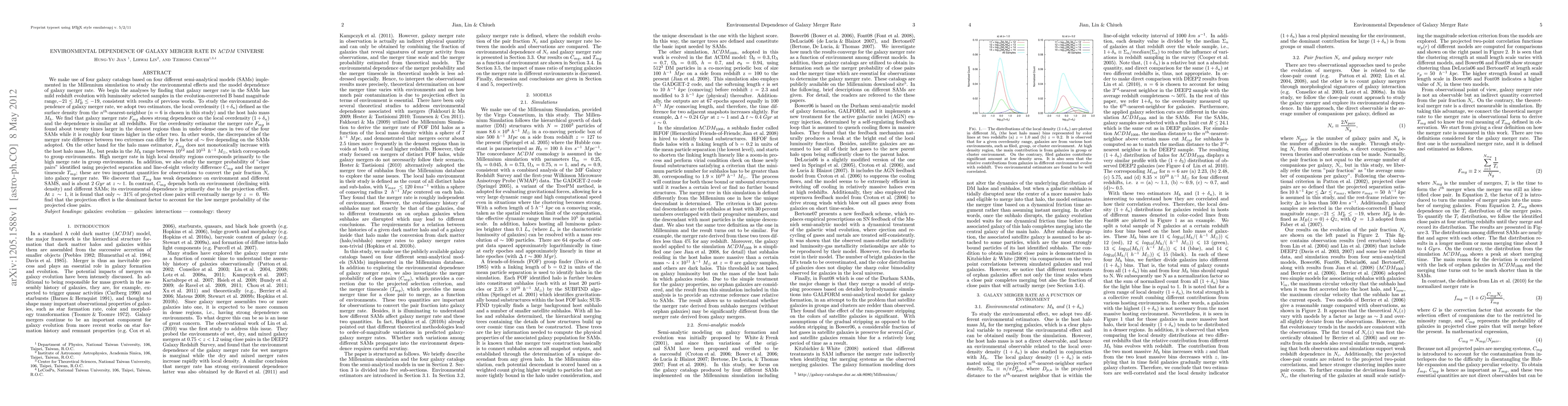 This study investigates the environmental dependence of galaxy merger rates using four semi-analytical models within the {\Lambda}CDM universe. It finds that galaxy merger rates are strongly influenced by local overdensity, being significantly higher in denser regions, and peak in group environments with host halo masses between 10^12 and 10^13 h-1 M{\Theta}.