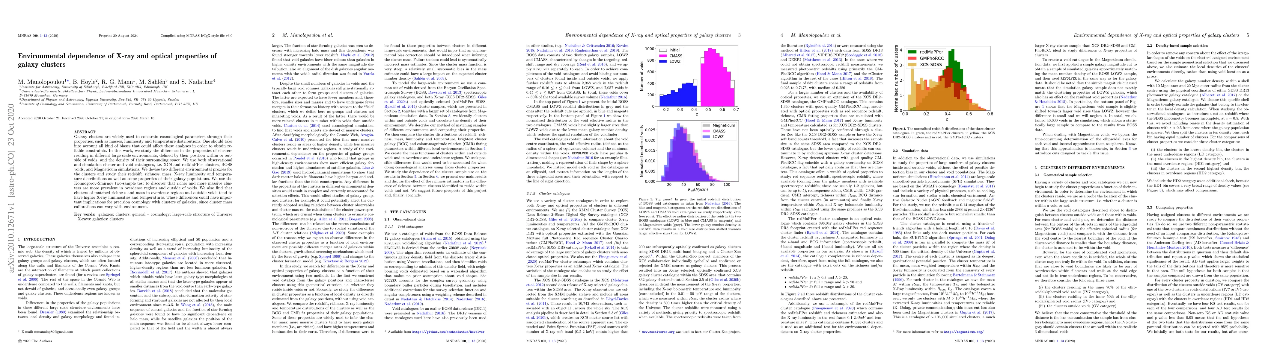 Galaxy clusters in different large-scale environments exhibit distinct properties, including higher X-ray luminosities and temperatures in overdense regions and outside of voids. This finding has implications for precision cosmology with cluster galaxies.