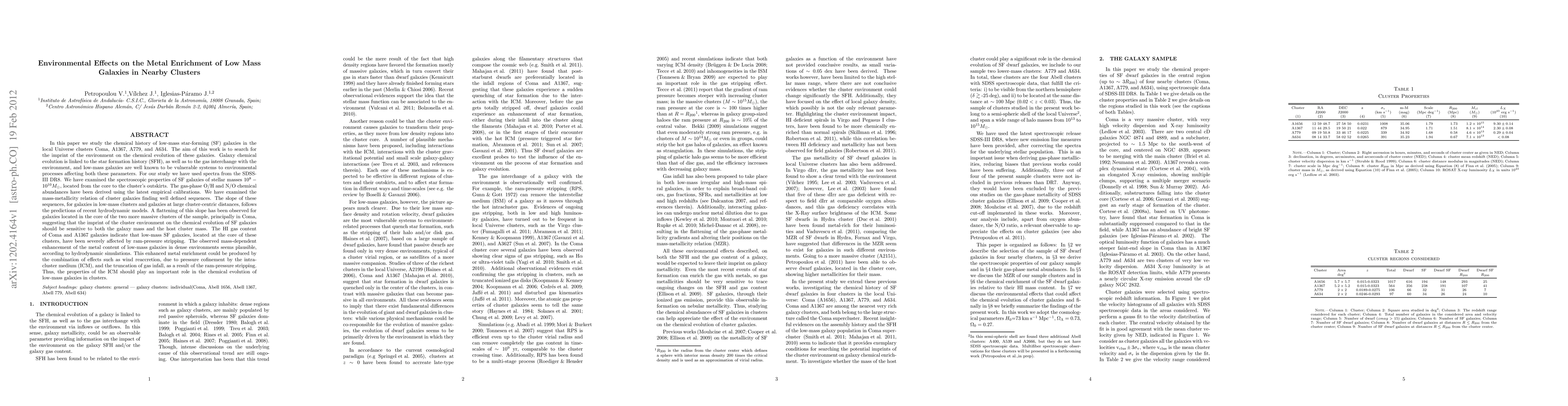 This paper investigates the chemical evolution of low-mass star-forming galaxies in nearby clusters, finding that environmental factors significantly affect their metal enrichment. The study reveals a mass-dependent enhancement in metal content, likely due to processes like wind reaccretion and ram-pressure stripping, influenced by the intra-cluster medium.