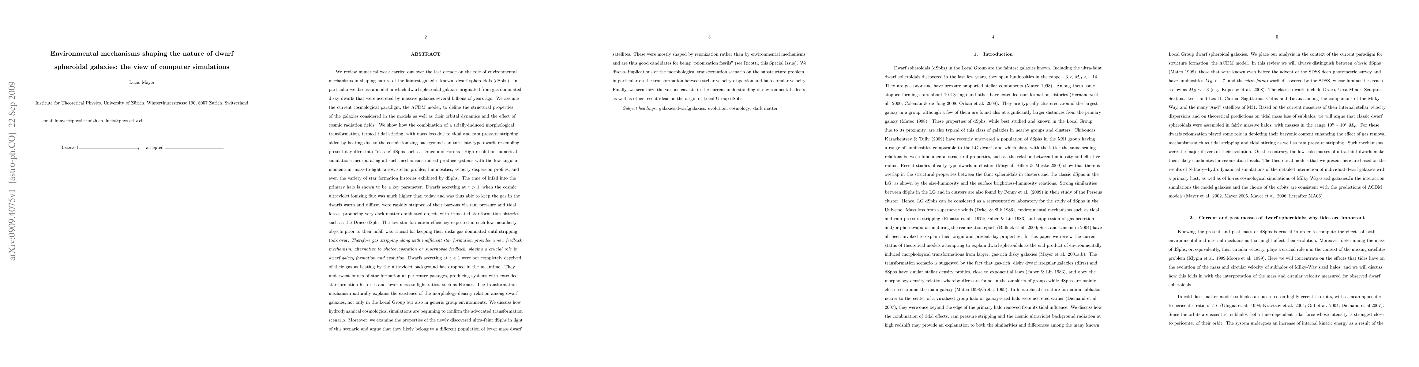 We review numerical work carried out over the last decade on the role of environmental mechanisms in shaping the nature of the faintest galaxies known, dwarf spheroidals (dSphs). In particular we discuss a model in which dSphs originated from gas dominated, disky dwarfs that were accreted by massive galaxies several billions of years ago. Dwarfs accreting at $z > 1$, when the cosmic ultraviolet ionizing flux was much higher than today and was thus able to keep the gas in the dwarfs warm and diffuse, were rapidly stripped of their baryons via ram pressure and tidal forces, producing very dark matter dominated objects with truncated star formation histories, such as the Draco dSph. The low star formation efficiency expected in such low-metallicity objects prior to their infall was crucial for keeping their disks gas dominated until stripping took over. {\it Therefore gas stripping along with inefficient star formation provides a new feedback mechanism, alternative to photoevaporation or supernovae feedback, playing a crucial role in dwarf galaxy formation and evolution}. Tidally induced instabilities, termed "tidal stirring", turned the surviving stellar disk into a spheroid. Moreover, we examine the properties of the newly discovered ultra-faint dSphs in light of this scenario and argue that they likely belong to a different population of lower mass dwarf satellites. These were mostly shaped by reionization rather than by environmental mechanisms and are thus good candidates for being "reionization fossils". We discuss implications of the morphological transformation scenario on the substructure problem. (Abridged)