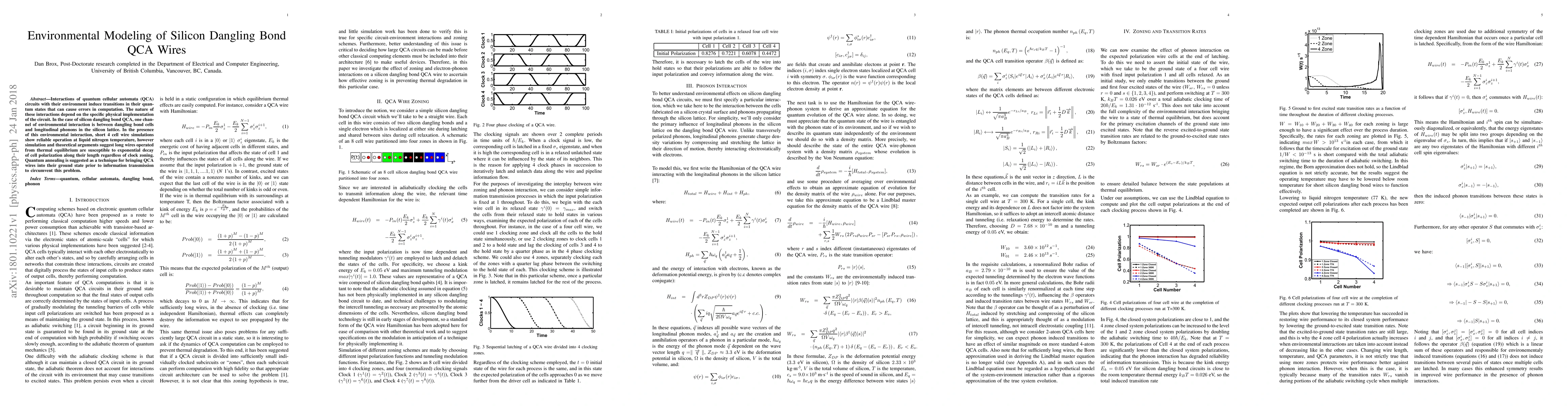 This research investigates how environmental interactions affect silicon dangling bond quantum cellular automata (QCA) wires, finding that while short wires operate reliably at liquid nitrogen temperatures, long wires suffer from exponential decay of cell polarization at thermal equilibrium. Quantum annealing is proposed as a method to mitigate this issue by resetting the wires to their ground state before data transmission.