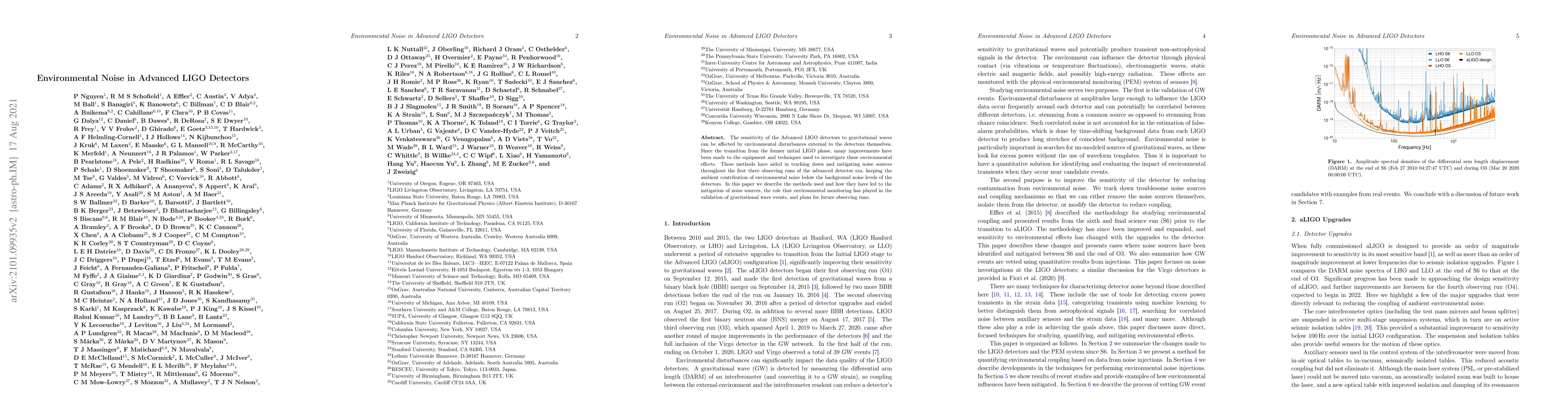 This paper details the methods employed to mitigate environmental noise affecting the Advanced LIGO detectors' sensitivity to gravitational waves, highlighting improvements made since the initial LIGO phase and their role in validating detected gravitational wave events. Future observing run plans are also discussed.