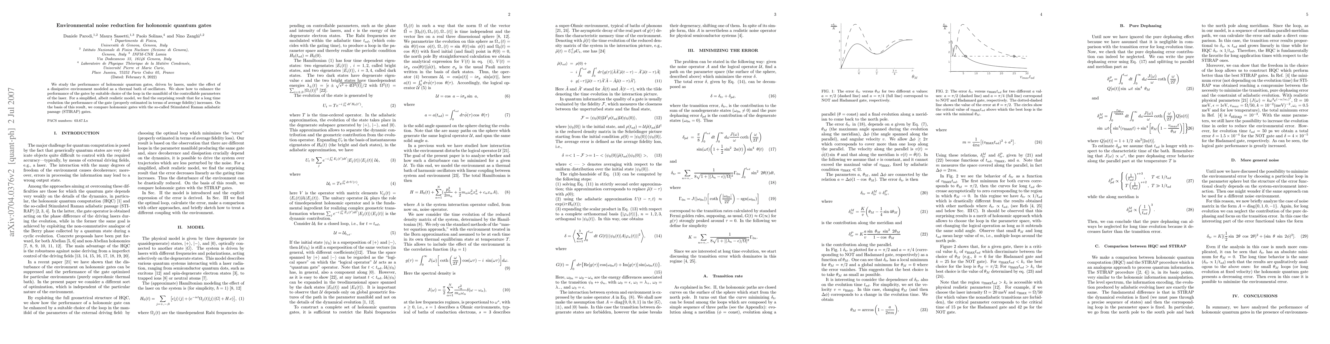 This paper investigates the impact of environmental noise on holonomic quantum gates driven by lasers, demonstrating that a carefully chosen loop in the laser parameter manifold can enhance gate performance. Surprisingly, it shows that for long time evolutions, gate fidelity can actually improve, and compares these findings to stimulated Raman adiabatic passage (STIRAP) gates.