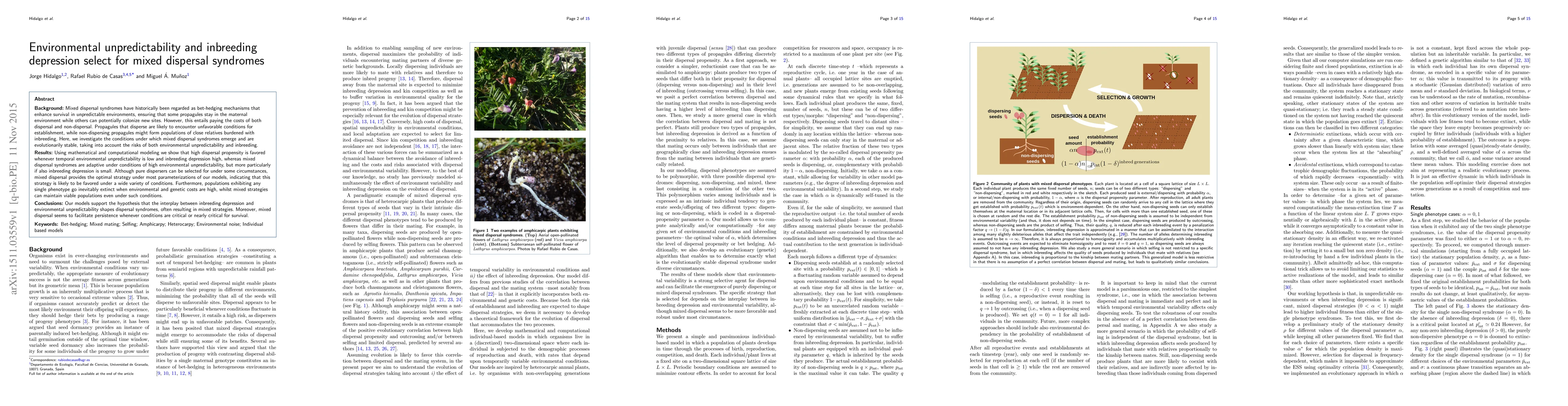 Mixed dispersal syndromes are favored under conditions of high environmental unpredictability and small inbreeding depression, while pure dispersers may not persist when costs are high. This strategy offers the best survival chance in critical or nearly critical conditions.