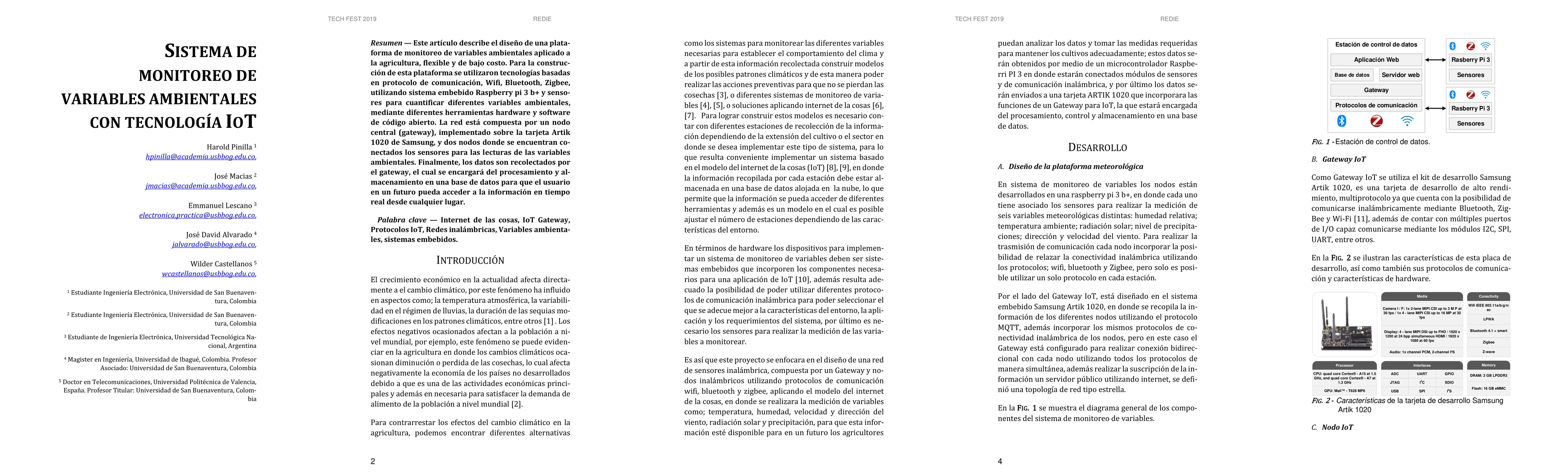 This article describes the design of a flexible and low-cost platform for monitoring environmental variables applied to agriculture. For the construction of this platform, technologies based on the communication protocol, Wi-Fi, Bluetooth, and Zigbee were used, using the embedded Raspberry pi 3 b + system and sensors to quantify different environmental variables, using different open source hardware and software tools. The network is made up of a central node (gateway), implemented on Samsung's Artik 1020 card, and two nodes where the sensors for reading environmental variables are connected. Finally, the data is collected by the gateway, which will be in charge of processing and storing it in a database so that the user in the future can access the information in real time from anywhere.
