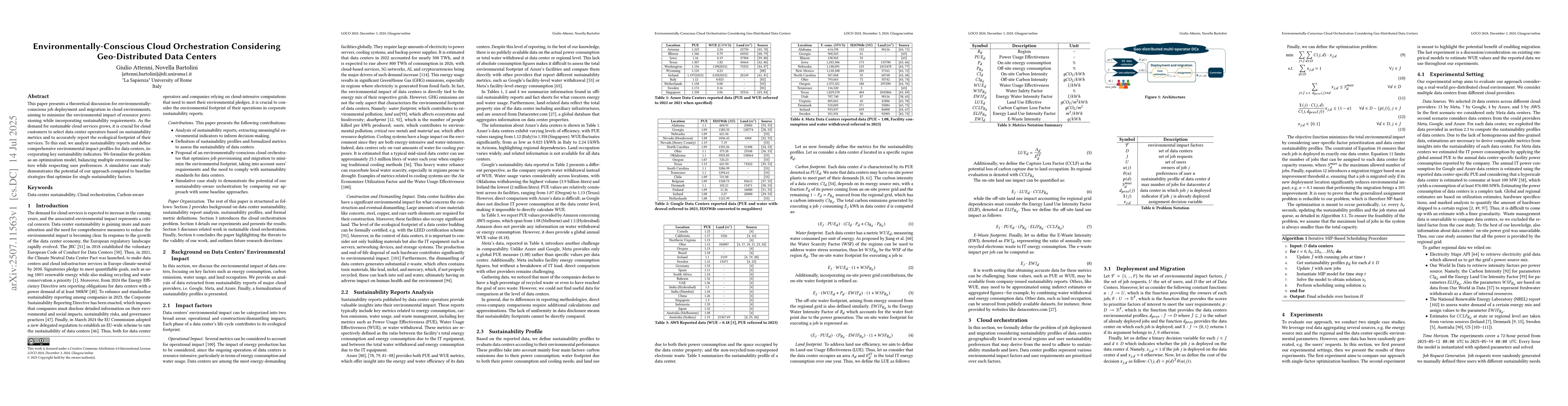 This paper presents a theoretical discussion for environmentally-conscious job deployment and migration in cloud environments, aiming to minimize the environmental impact of resource provisioning while incorporating sustainability requirements. As the demand for sustainable cloud services grows, it is crucial for cloud customers to select data center operators based on sustainability metrics and to accurately report the ecological footprint of their services. To this end, we analyze sustainability reports and define comprehensive environmental impact profiles for data centers, incorporating key sustainability indicators. We formalize the problem as an optimization model, balancing multiple environmental factors while respecting user preferences. A simulative case study demonstrates the {potential} of our approach compared to baseline strategies that optimize for single sustainability factors.