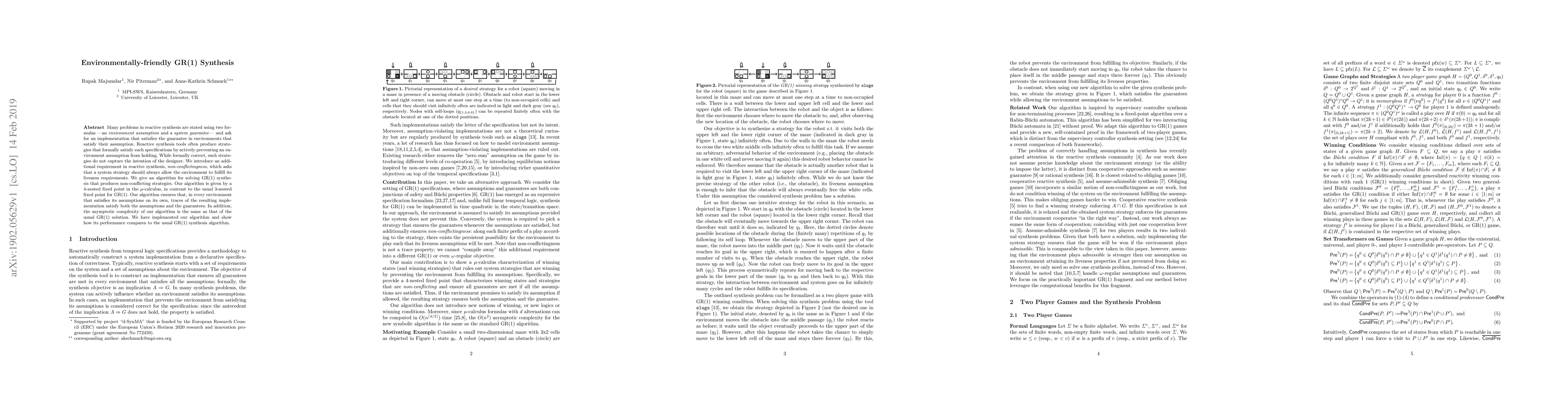 This paper proposes an environmentally-friendly GR(1) synthesis algorithm that produces strategies allowing environments to fulfill their liveness requirements without conflict, contrasting with traditional methods that may prevent environments from meeting their assumptions. The new algorithm maintains the same asymptotic complexity as standard GR(1) synthesis.