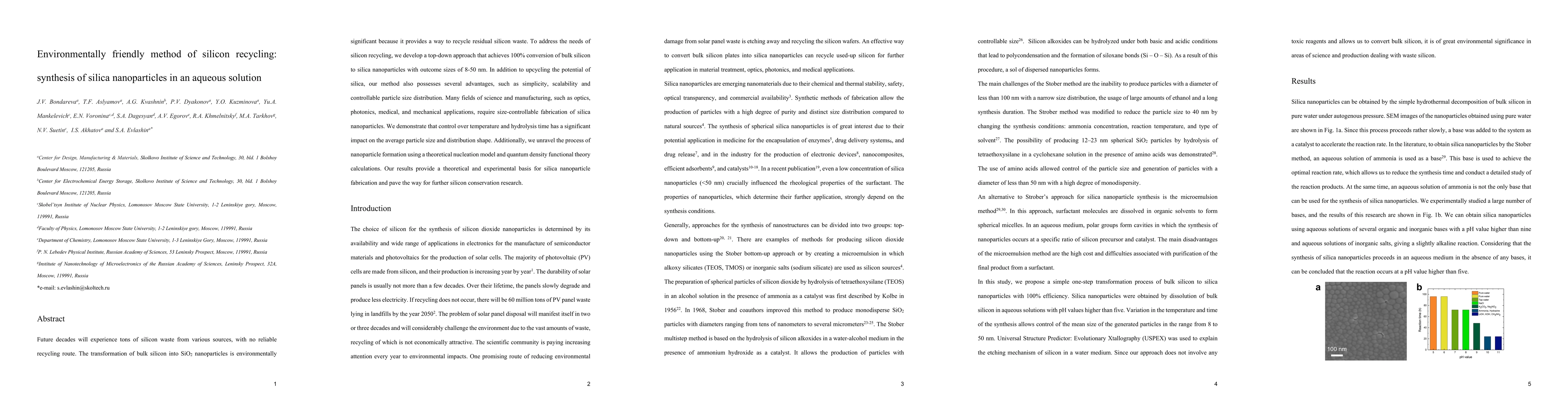 Researchers develop an environmentally friendly method to recycle silicon waste into silica nanoparticles with controlled sizes for various industrial applications.