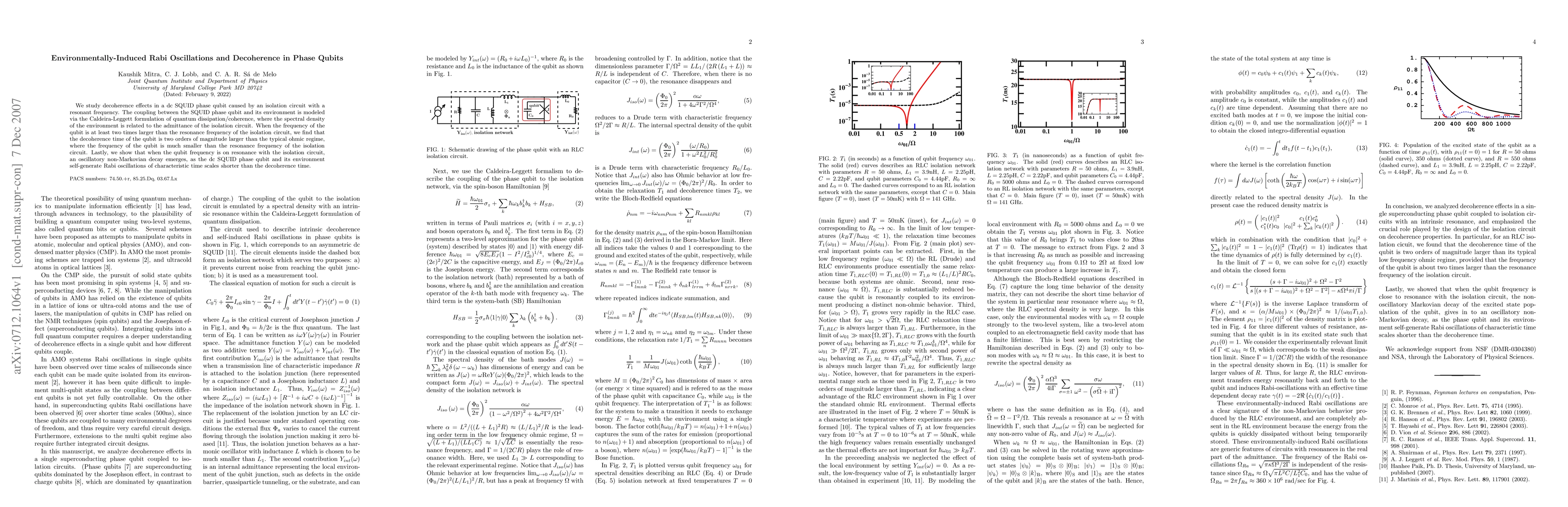 This paper investigates decoherence in a dc SQUID phase qubit influenced by an isolation circuit with a resonant frequency. The study reveals that when the qubit frequency is at least twice the circuit's resonance frequency, decoherence time is significantly larger than in the ohmic regime. Additionally, resonant conditions induce oscillatory non-Markovian decay, showcasing self-generated Rabi oscillations between the qubit and its environment.