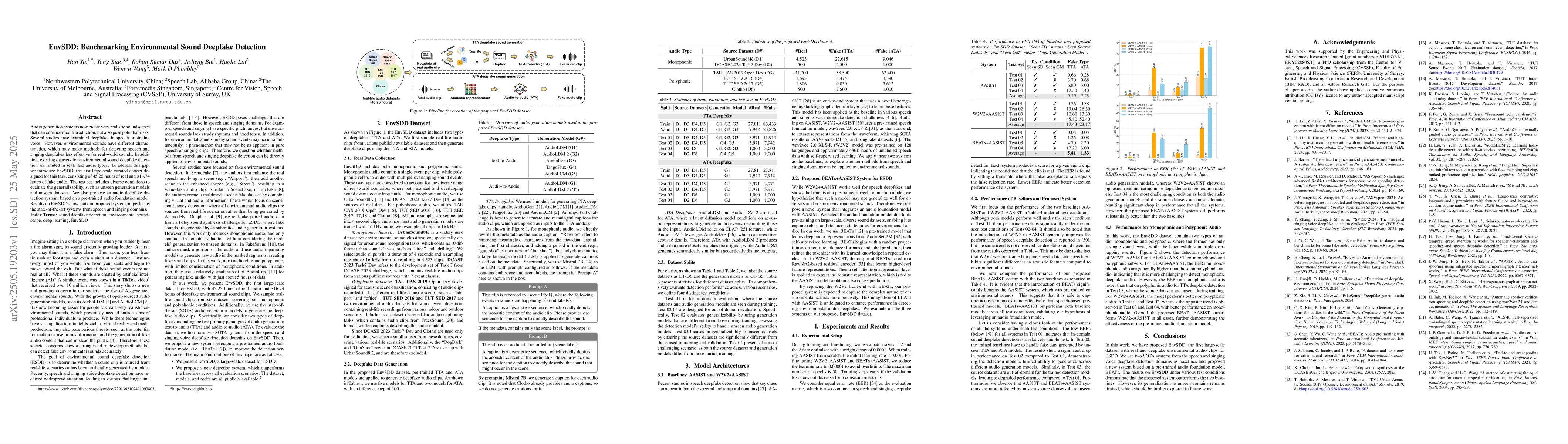 Researchers introduce EnvSDD, a large-scale dataset for detecting environmental sound deepfakes, and propose an audio deepfake detection system that outperforms state-of-the-art methods in speech and singing domains.