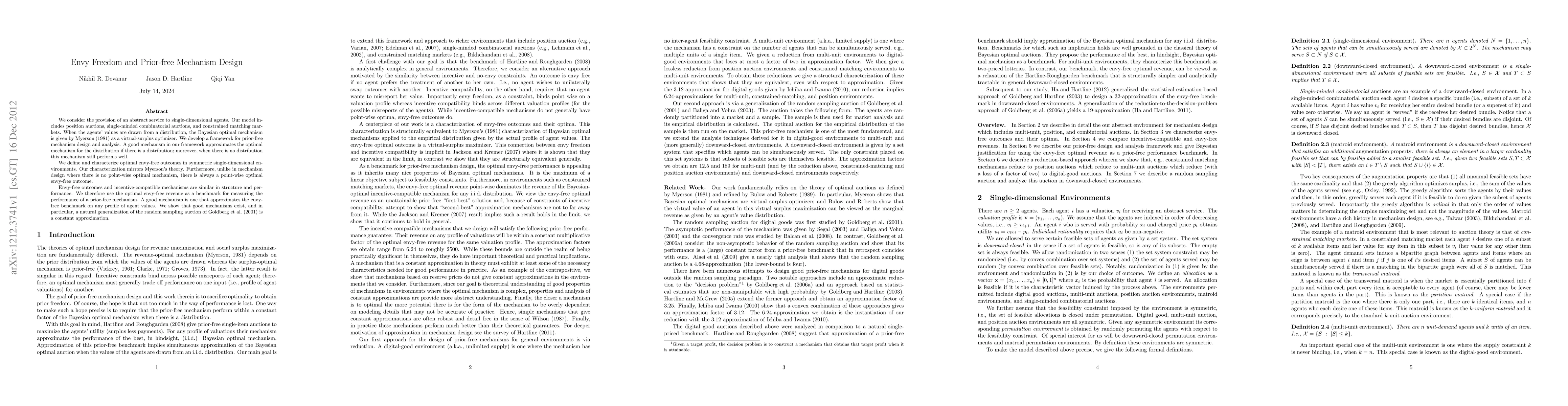 This paper explores prior-free mechanism design for abstract services to single-dimensional agents, focusing on envy-free outcomes and their relation to optimal revenue. It demonstrates the existence of mechanisms that approximate the optimal envy-free revenue benchmark, using a generalized random sampling auction as an example.