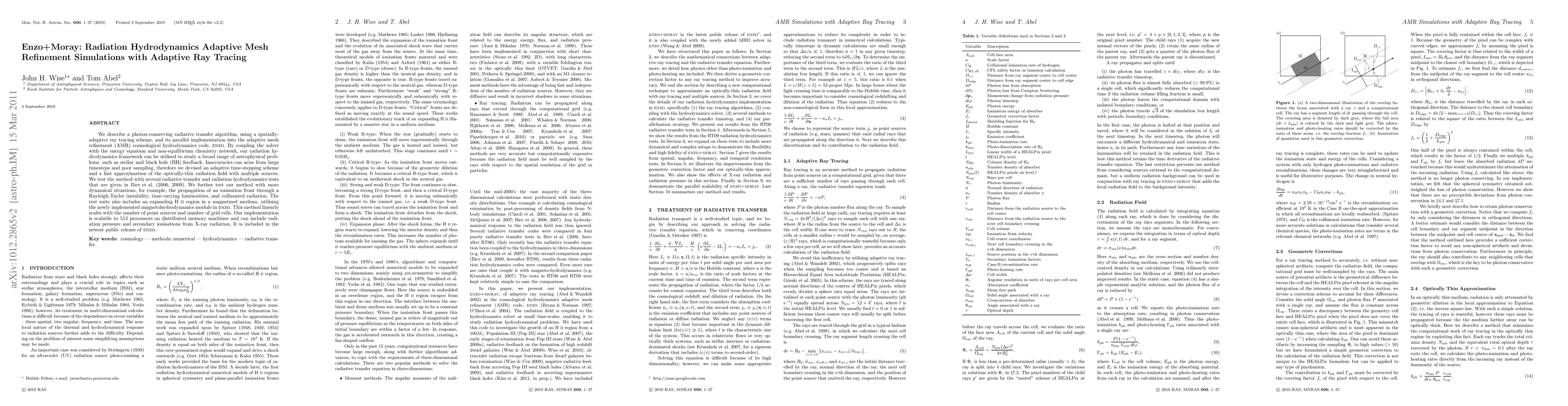 This paper presents a photon-conserving radiative transfer algorithm integrated into the Enzo adaptive mesh refinement code, enabling detailed simulations of astrophysical phenomena like stellar and black hole feedback. The method includes adaptive time-stepping and a scalable implementation that can handle multiple sources and grid cells efficiently.
