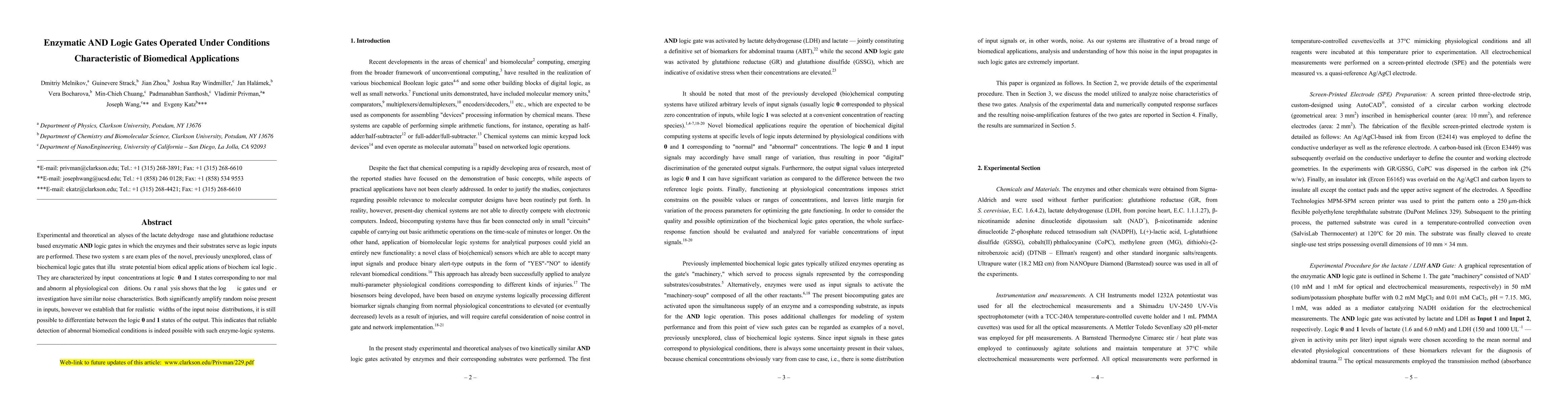 This paper explores lactate dehydrogenase and glutathione reductase based enzymatic AND logic gates, demonstrating their potential for biomedical applications. Despite amplifying random noise, the gates can reliably differentiate between normal and abnormal physiological conditions, indicating their feasibility for detecting abnormal biomedical states.