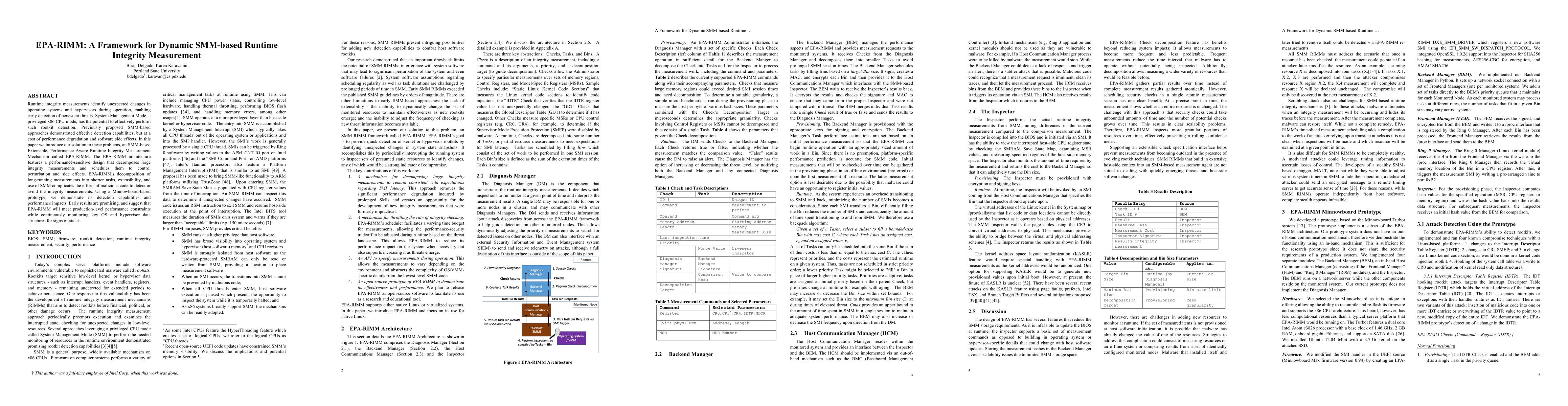 EPA-RIMM presents a novel decomposing approach for long-running measurements, allowing it to avoid prolonged SMI delays and introducing non-determinism to complicate attackers' understanding of monitored items.