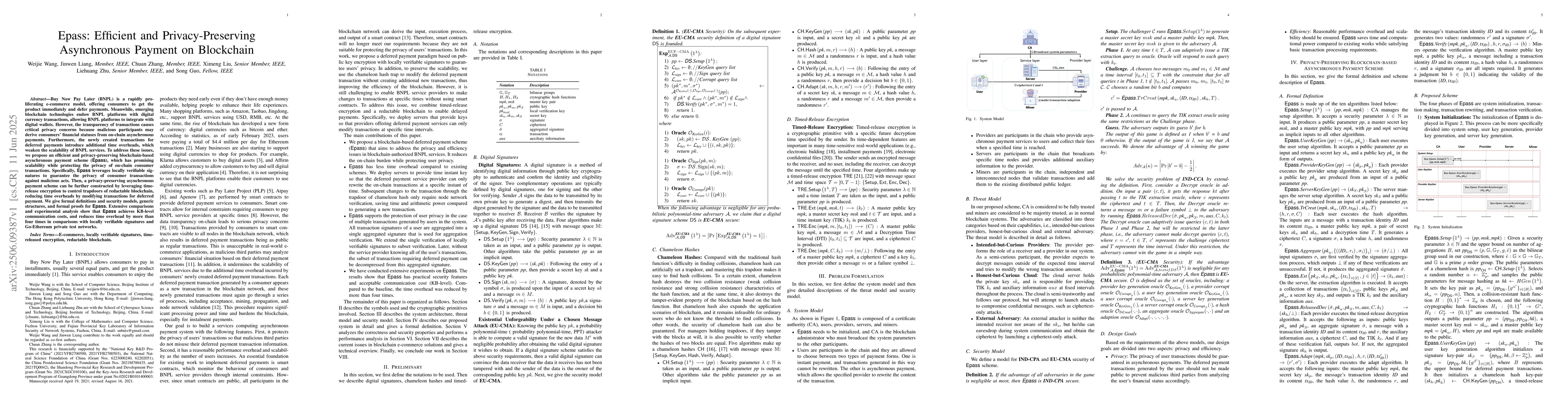 Epass proposes an efficient and privacy-preserving blockchain-based asynchronous payment scheme to address concerns of transparency and scalability in Buy Now Pay Later platforms.