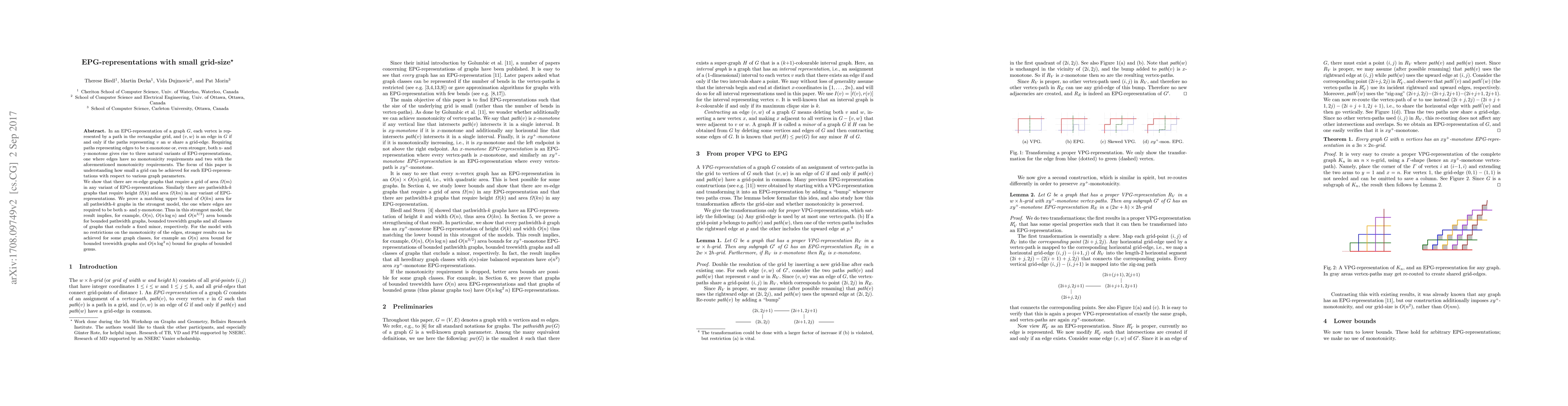 This paper investigates the minimum grid-size required for EPG-representations of graphs, where edges are represented by paths in a rectangular grid. It demonstrates that certain graph structures necessitate large grid areas, while also proving upper bounds for specific graph classes, particularly for those with bounded pathwidth or treewidth.